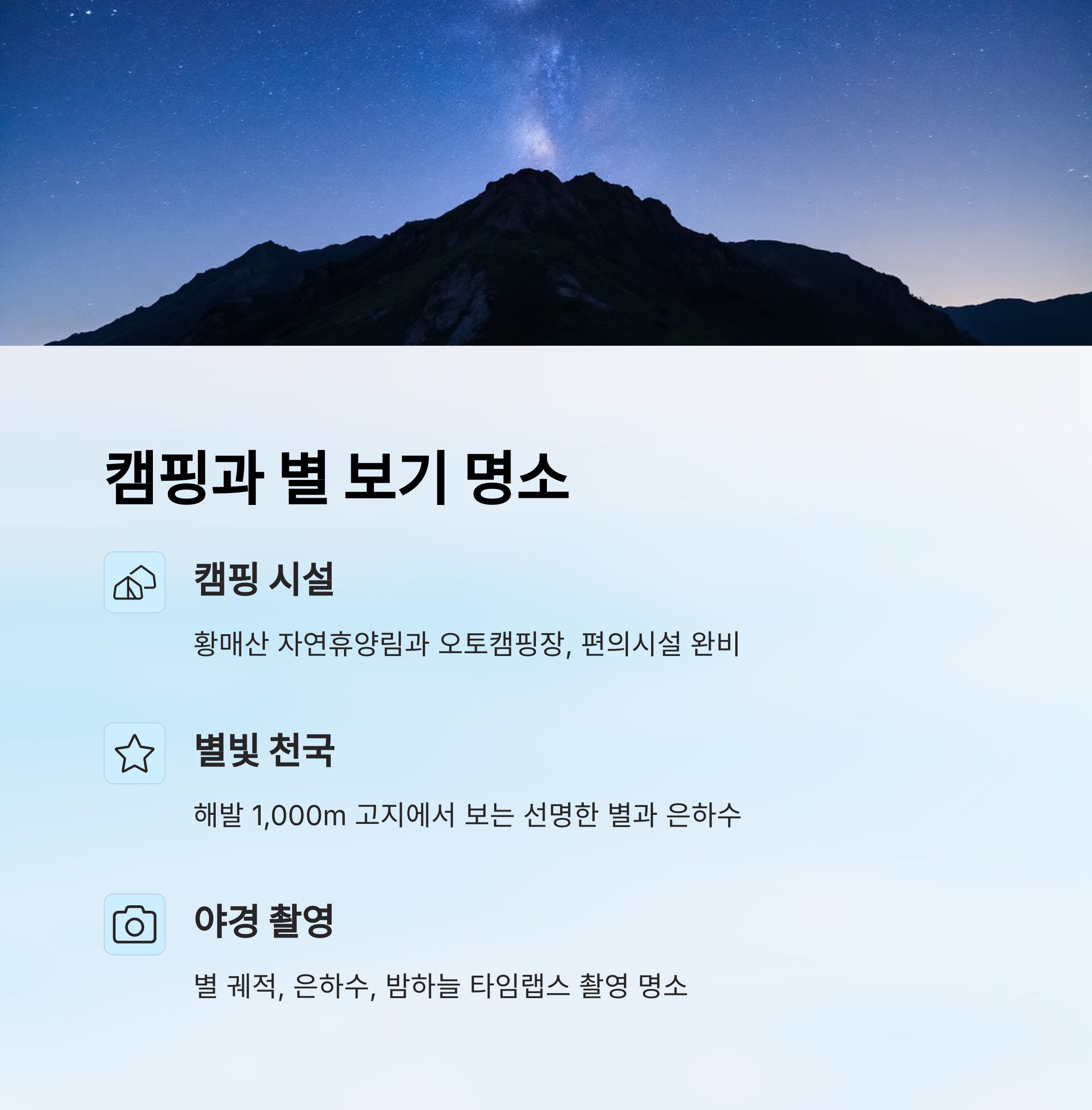 🏕️ 캠핑, 별 보기 명소로서의 매력🌌