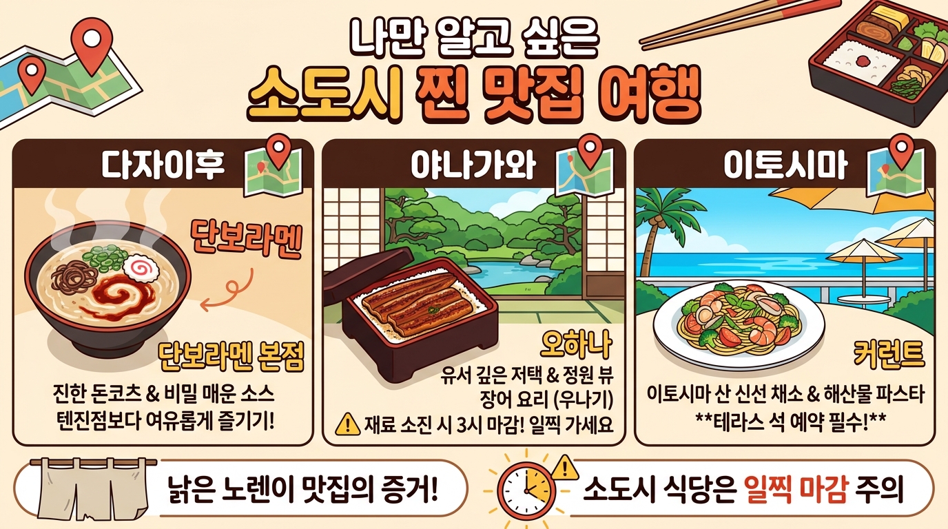여러분, 일본 여행 하면 가장 먼저 뭐가 떠오르시나요? 화려한 도심의 야경도 좋지만, 가끔은 골목 어귀에서 들려오는 풍경 소리와 정갈한 일본식 정원이 그리워질 때가 있죠. 😊 저도 지난 후쿠오카 여행 때 매일 똑같은 백화점 구경에 조금 지쳐 있었거든요. 그러다 문득 기차를 타고 근교로 나갔는데, 거기서 만난 평온함이 이번 여행 최고의 선물이었답니다. "아, 이게 진짜 일본 여행이지!" 싶더라고요. 오늘 제가 직접 발로 뛰며 느꼈던 후쿠오카 근교 소도시들의 매력을 듬뿍 담아 전달해 드릴게요. 함께 떠나보실까요? 🚂