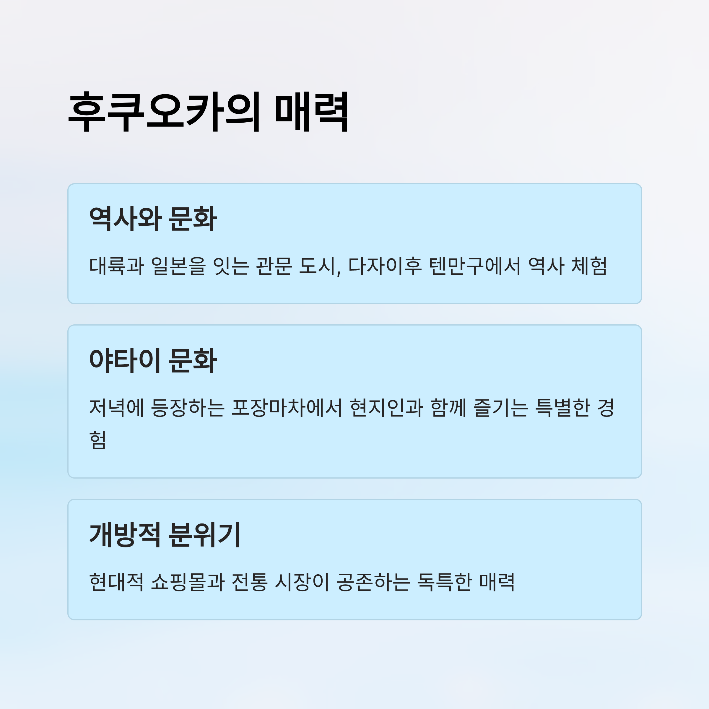 후쿠오카의 매력을 제대로 느끼려면, 과거와 현재가 공존하는 공간들을 직접 걸어보는 게 좋아요. 낮에는 신사와 박물관을 둘러보고, 밤에는 야타이에서 현지인과 어울리며 한 잔 하는 여유를 즐기는 식이죠. 이렇게 하면 도시의 깊이를 더 잘 이해할 수 있답니다. 🌙
