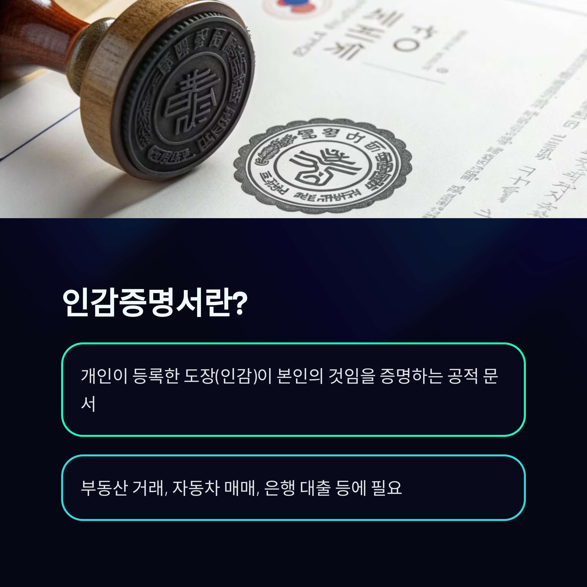 인감증명서는 본인의 도장(인감)이 진짜임을 증명하는 중요한 문서예요. 주로 금융기관, 부동산 거래, 법원 서류 제출 등에 사용되죠.