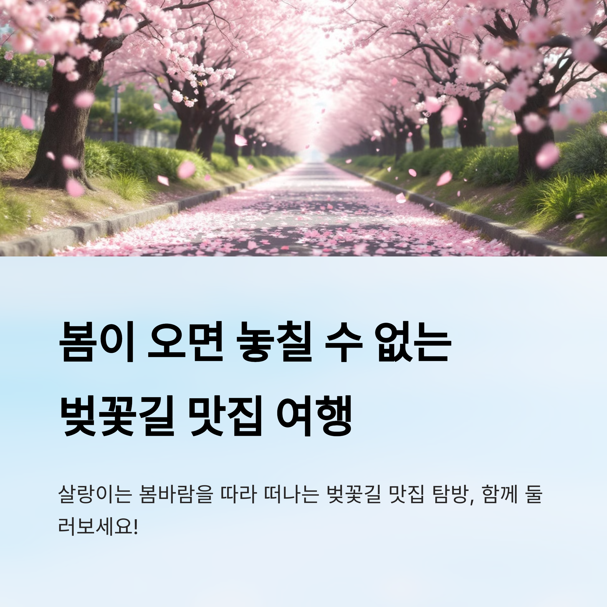 벚꽃길 따라 걷는 봄날, 그 감성의 완성은 뭐니 뭐니 해도 맛있는 음식이죠 🌸🍽️ 분홍빛 벚꽃 터널 아래에서 따뜻한 밥 한 끼 먹거나, 테라스 카페에서 달콤한 디저트를 즐기는 그 순간! 봄을 오감으로 느끼는 최고의 방법이 아닐까 싶어요.