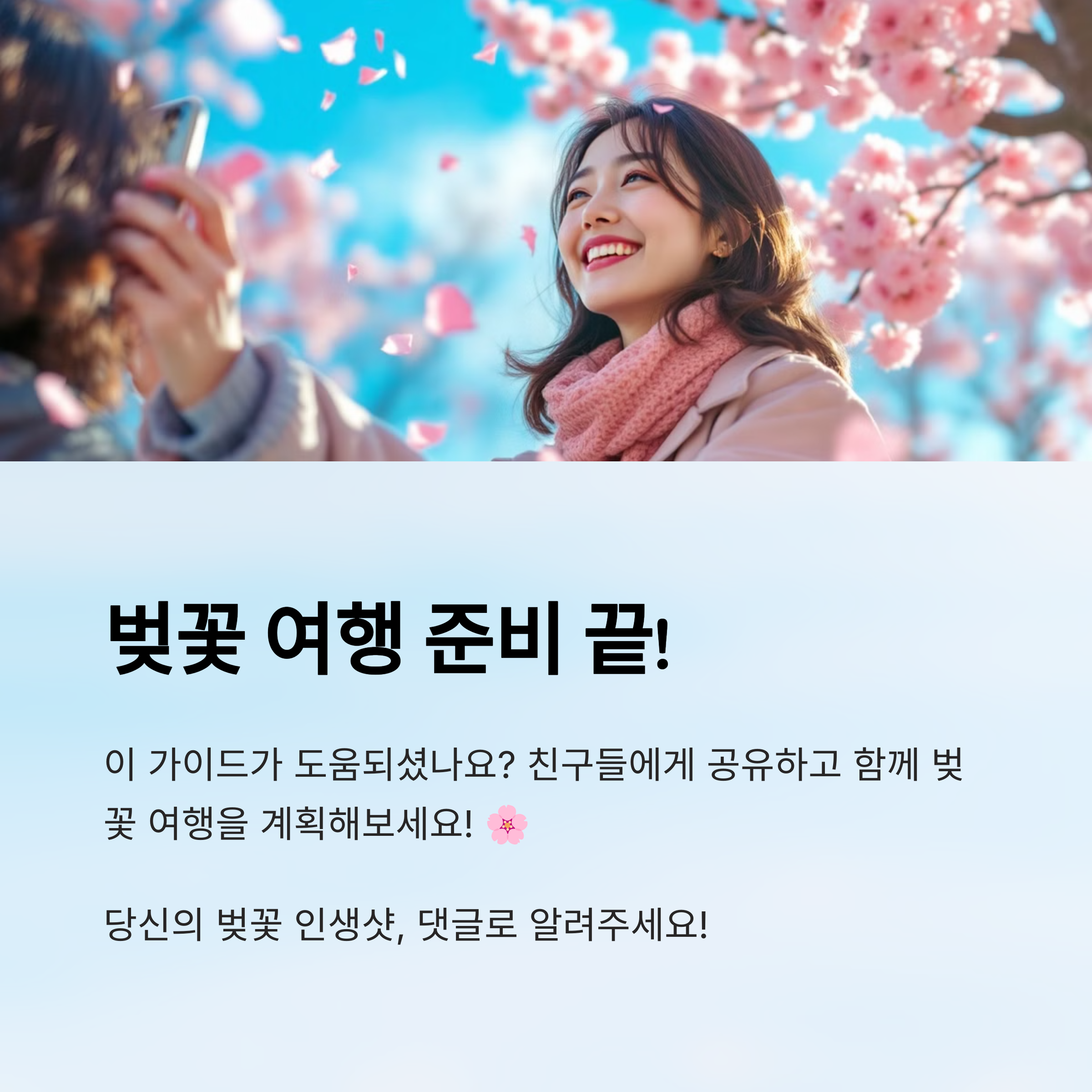 마지막으로, 벚꽃 아래서 찍은 그 사진 한 장이 2025년 봄을 기억하게 해줄 거예요. “그때 우리, 진짜 예뻤다”는 말이 절로 나올 거예요. 🌸📷