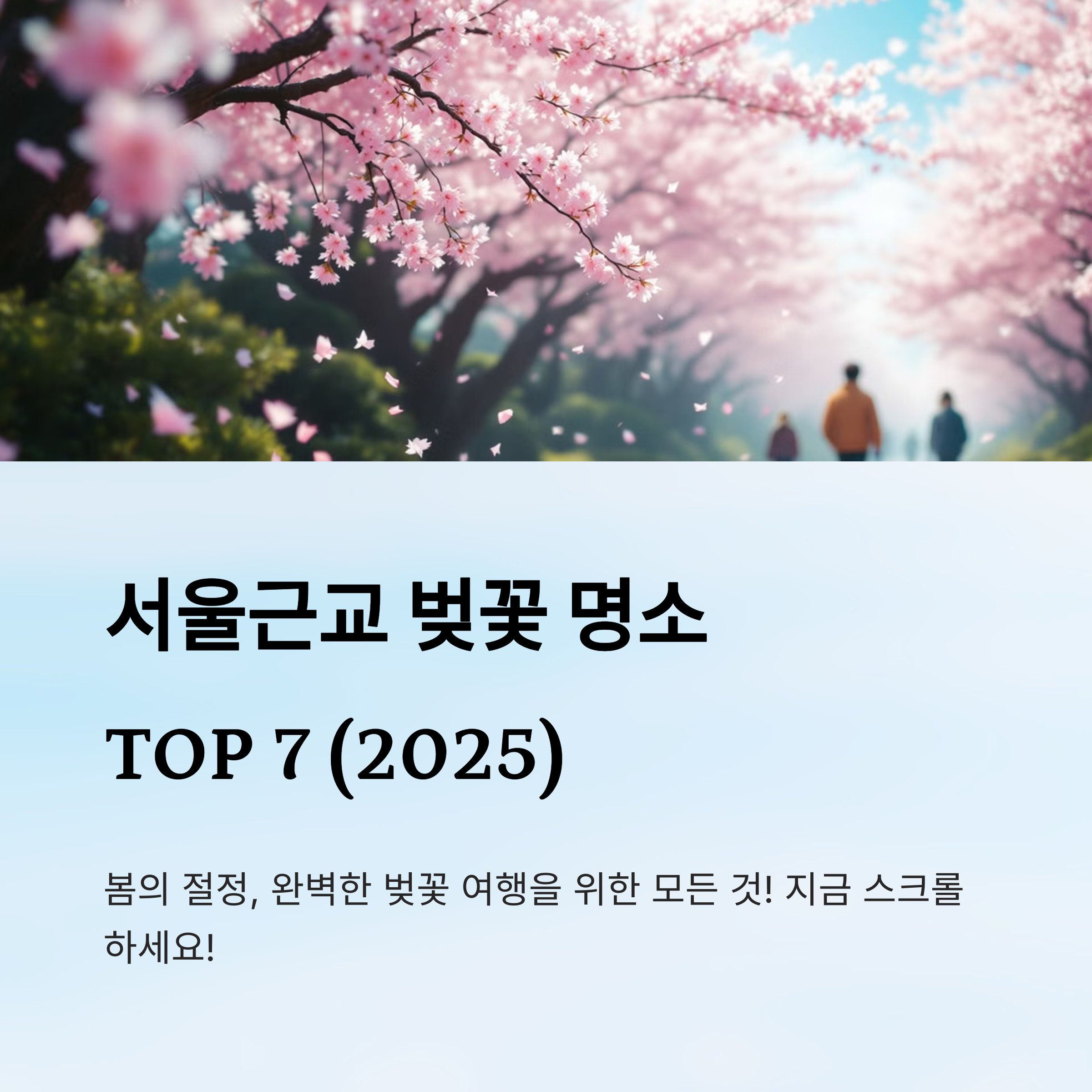 이번 글에서는 2025년 서울 근교에서 벚꽃을 가장 예쁘게, 편하게, 감성 가득 즐길 수 있는 명소 7곳을 소개할게요. 연인과 데이트든, 가족 나들이든, 혼자 힐링 여행이든 다 맞춤형이에요.
