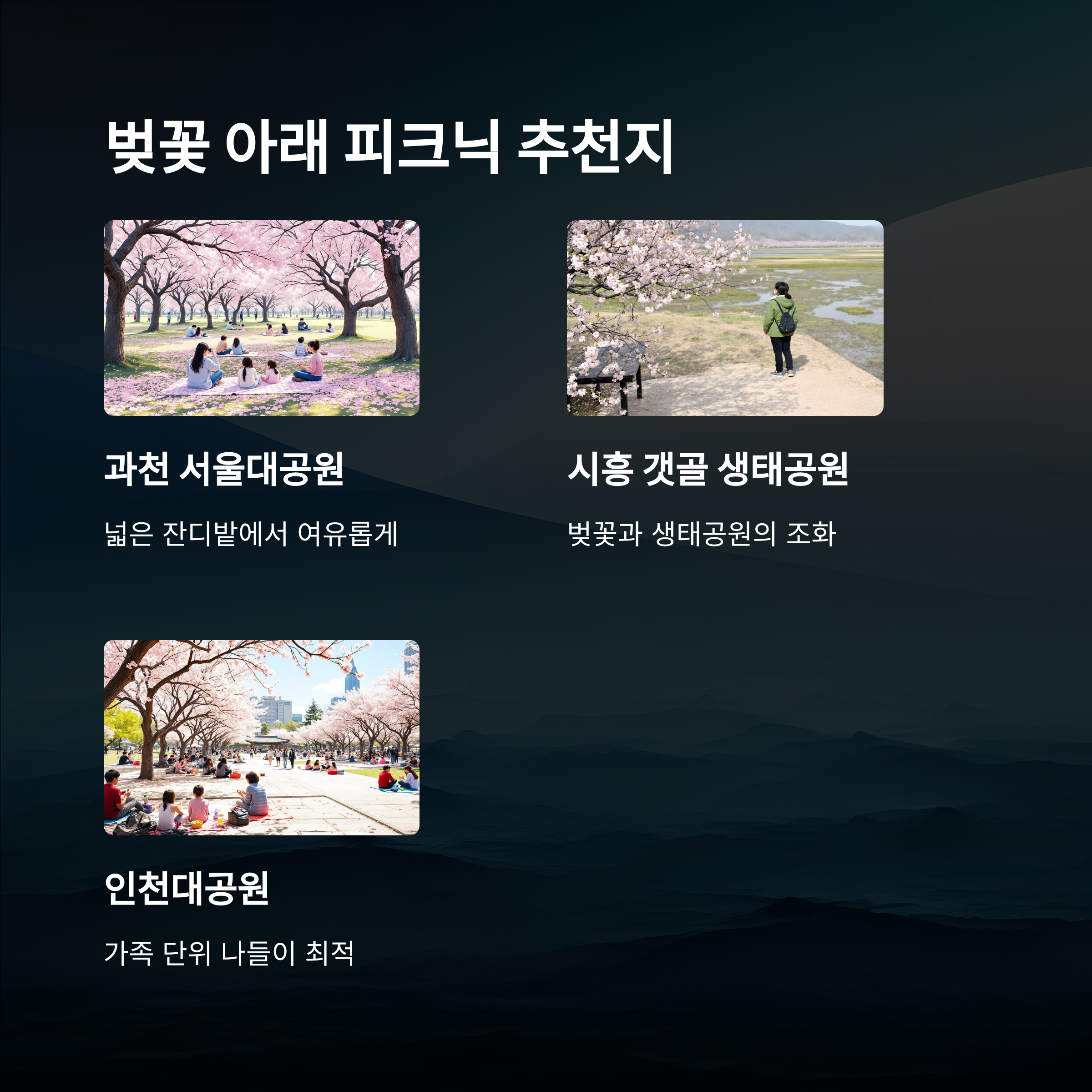 같이 가는 사람의 성향을 고려해서 장소를 고르면 그 하루가 훨씬 더 특별해져요. 좋은 장소, 좋은 타이밍, 좋은 사람… 이 조합이 바로 벚꽃 시즌의 완성이죠 🌸💫