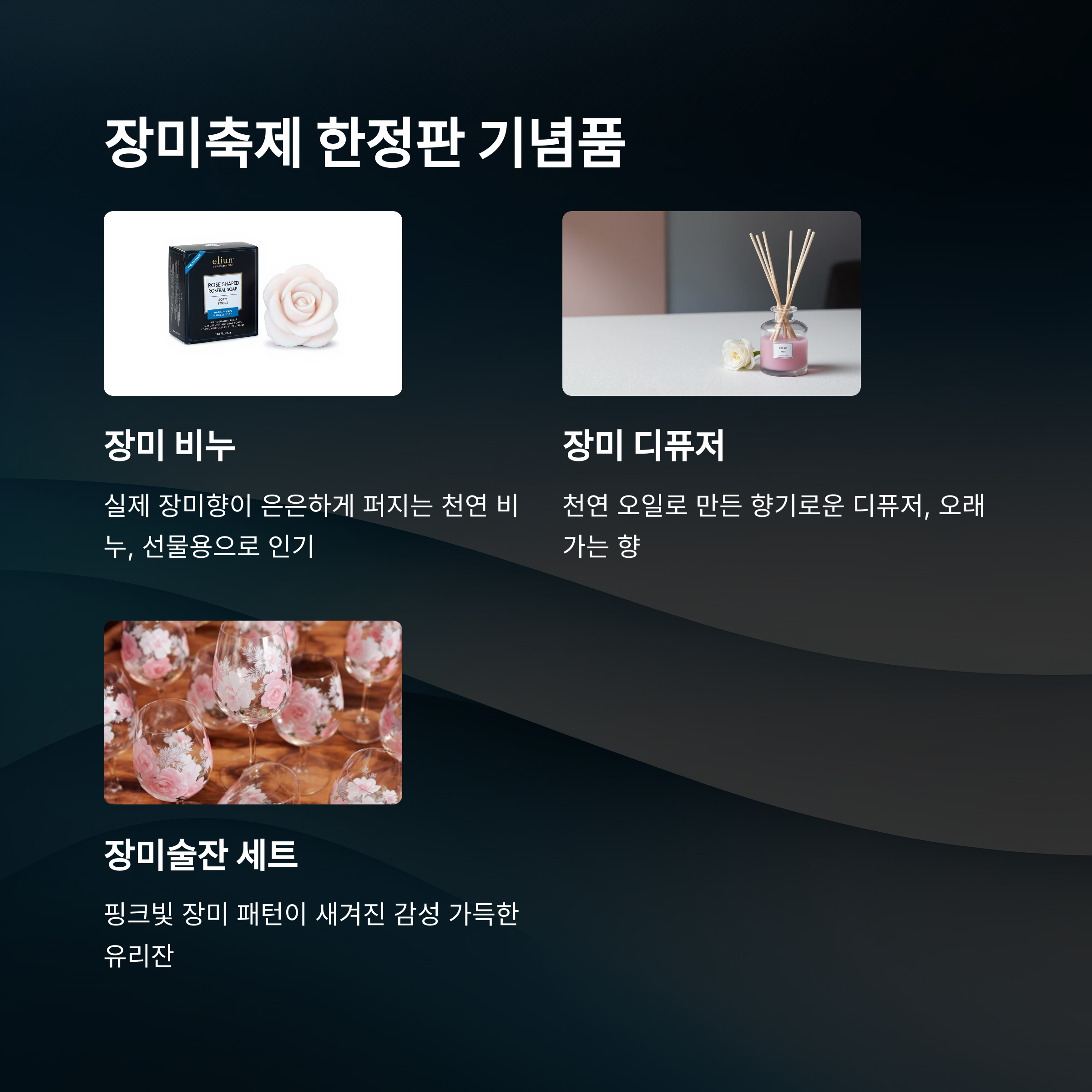 | 디퓨저 | 장미 향 오일로 공간을 향기롭게 |