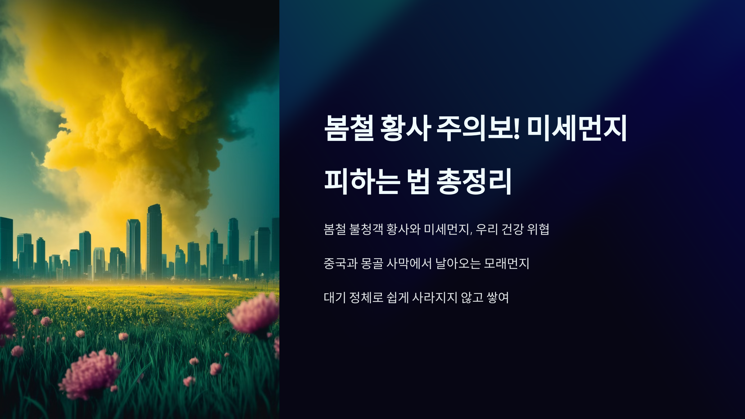 봄철이 되면 맑고 화창한 날씨를 기대하지만, 불청객처럼 찾아오는 황사와 미세먼지 때문에 걱정이 많아지죠. 황사는 중국과 몽골의 사막에서 날아오는 모래먼지로, 미세먼지와 결합하면 우리 건강에 더 큰 영향을 미칠 수 있어요.