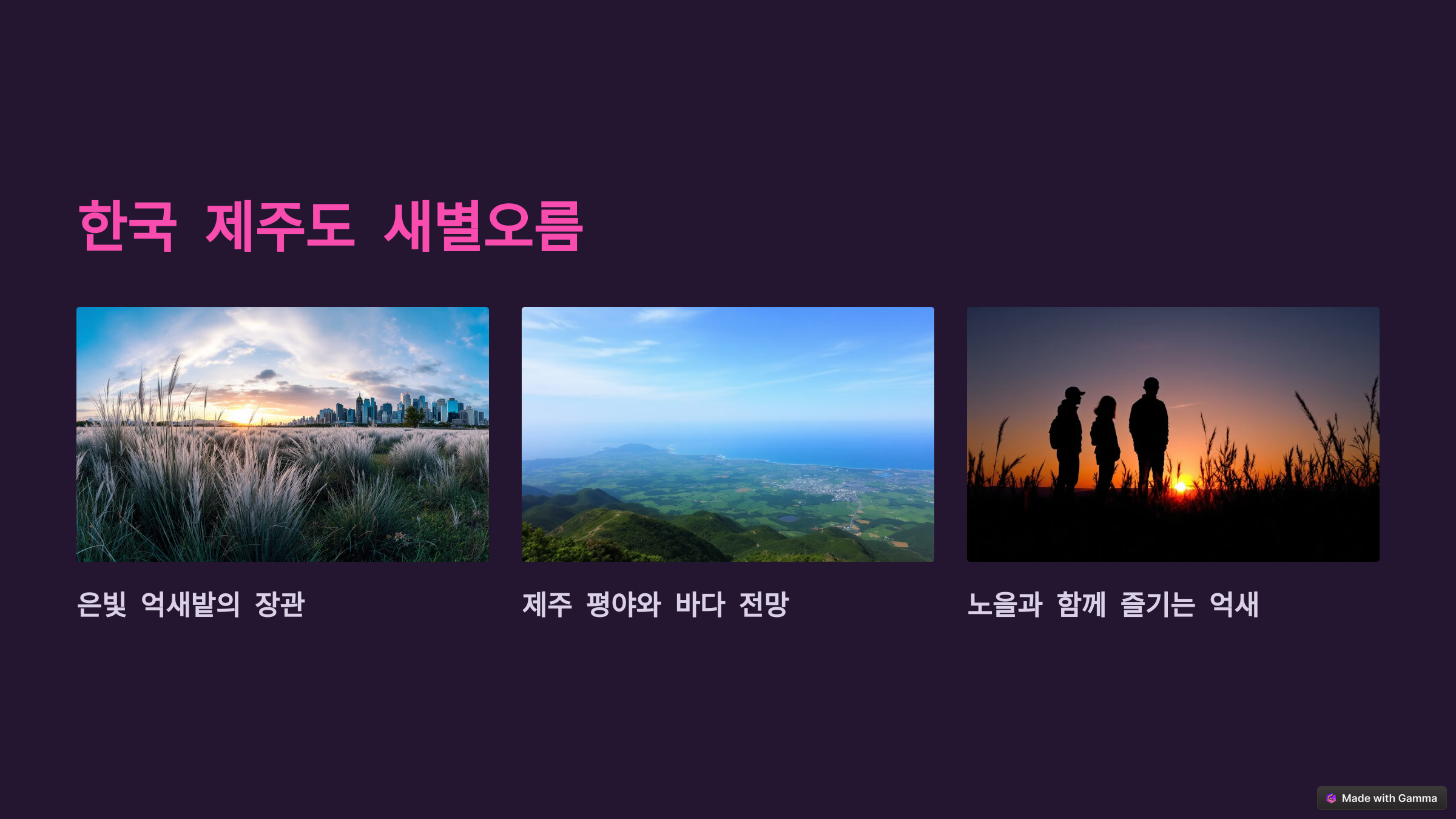 - 가을 포인트: 억새와 노을빛이 만들어내는 몽환적인 풍경