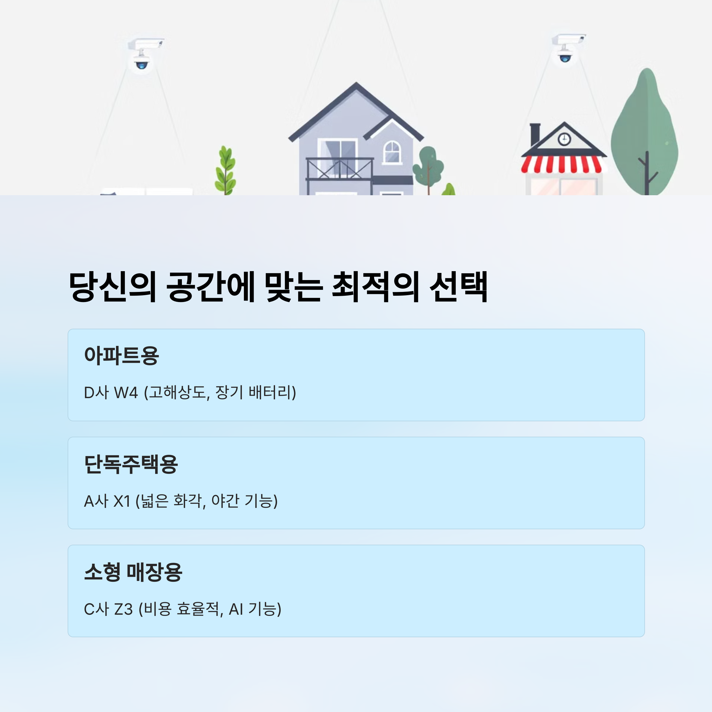 홈 CCTV는 사용하는 환경이나 가족 구성에 따라 최적의 선택이 달라져요. 같은 제품이라도 아파트, 단독주택, 반려동물 가정, 아이 있는 집 등 상황이 다르면 만족도도 달라지기 때문에, 지금부터는 상황별로 어떤 제품이 잘 어울리는지 정리해볼게요! 😊