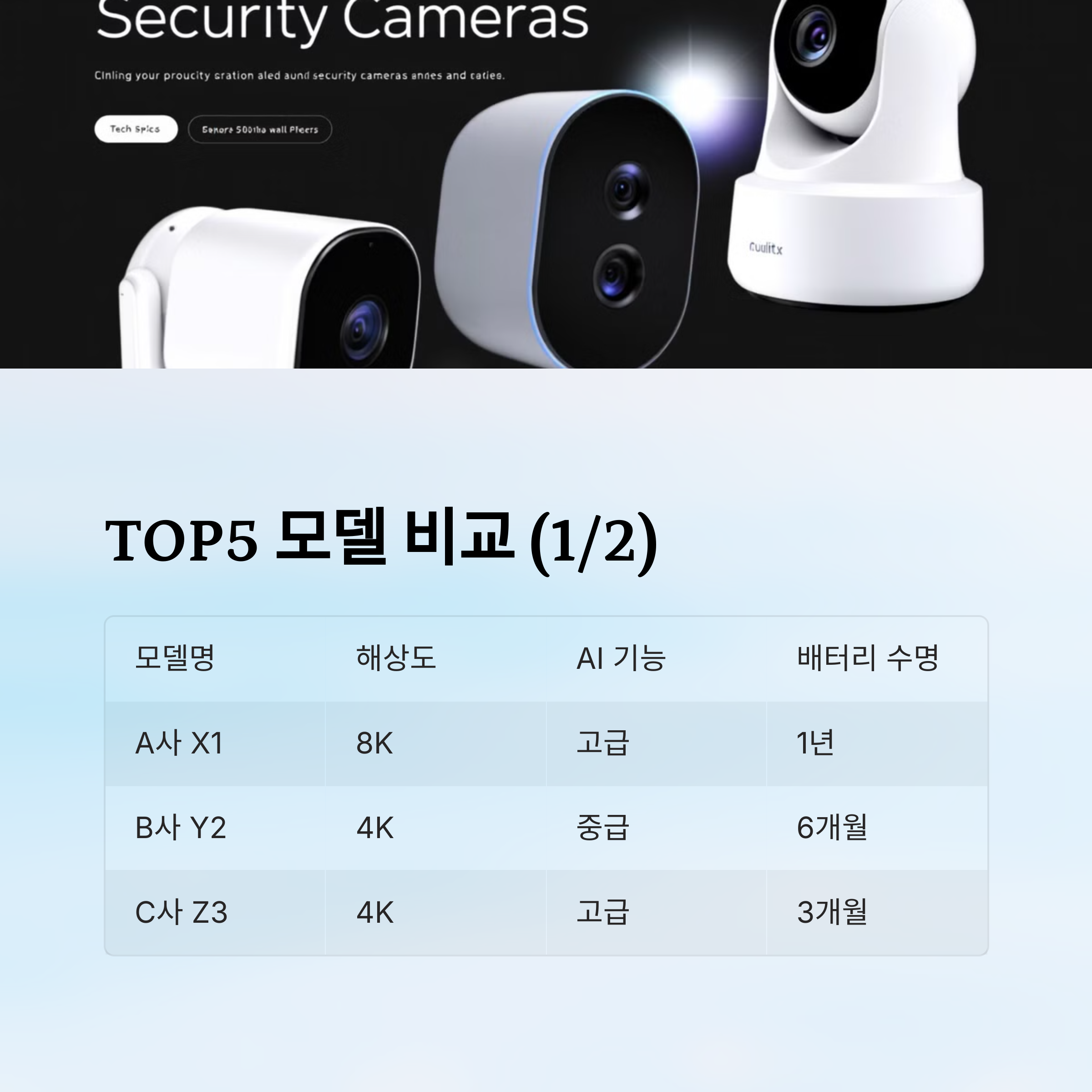 이번 포스팅에서는 최신 기술이 집약된 2025년 홈 CCTV 중 TOP 5를 꼽아 각 제품의 장단점, 기술 차이, 활용 환경까지 전부 비교해볼게요. ‘내게 딱 맞는’ CCTV 고르기 어렵다면 이 글 하나로 끝낼 수 있을 거예요!