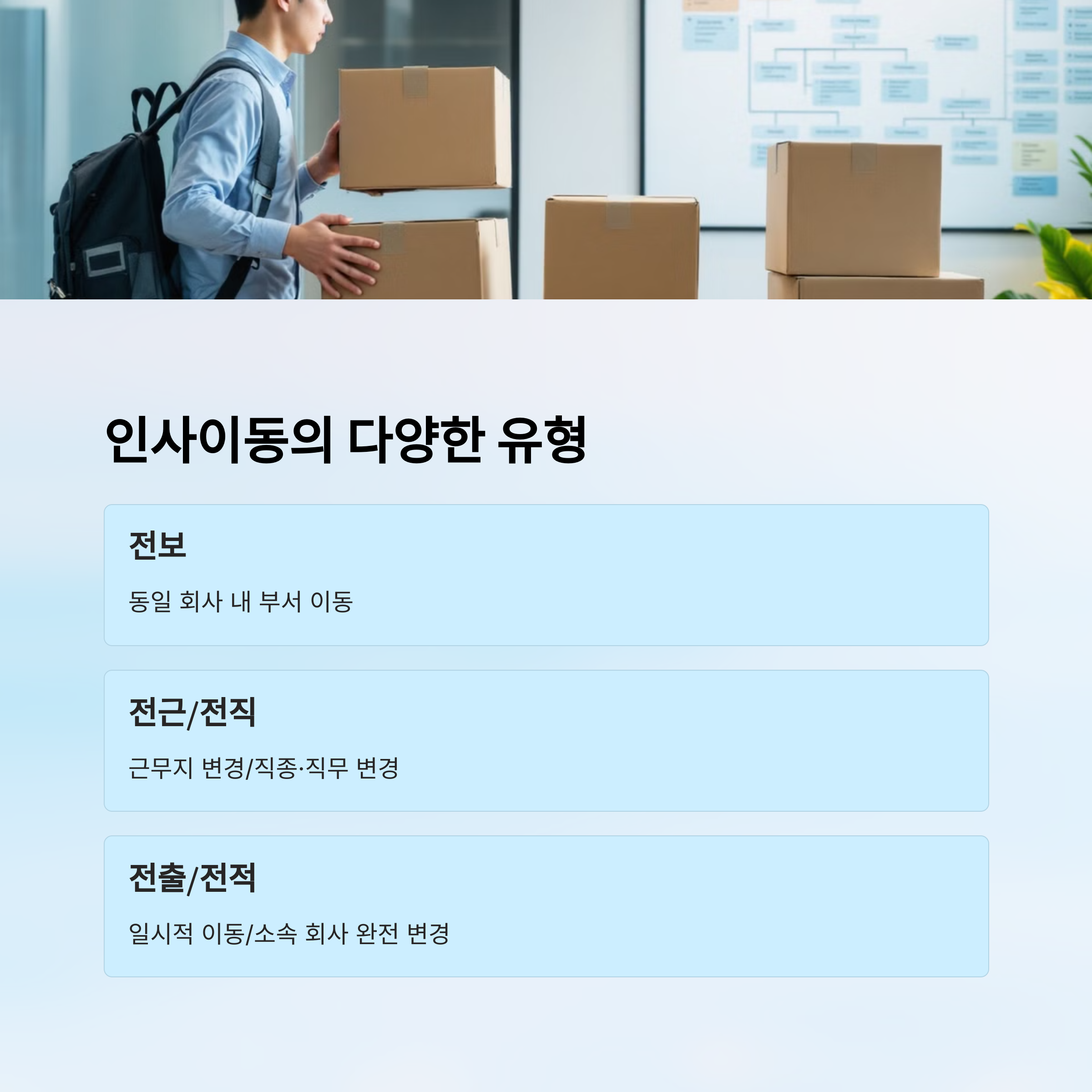 이동 형태도 전보, 전직, 파견, 겸직 등으로 나뉘어요. 단순한 부서 이동인지, 직무 자체가 바뀌는지, 새로운 지역으로 발령나는지에 따라 근로자 입장에서는 체감되는 변화가 매우 달라져요.