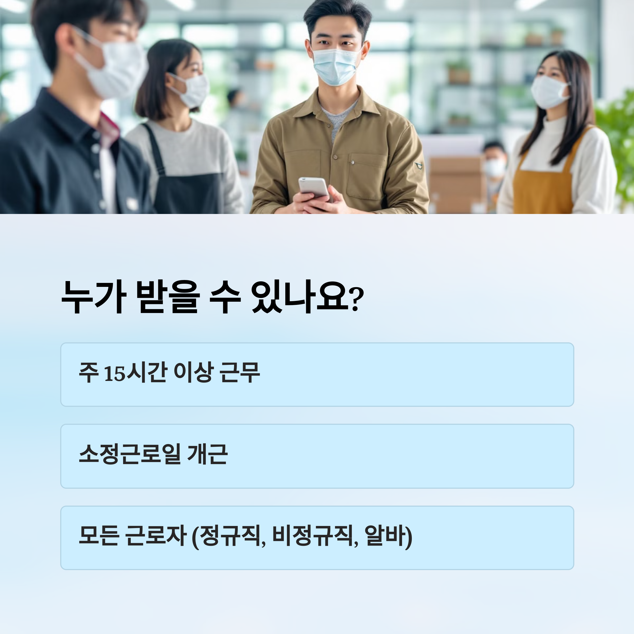 | 대상 | 주 15시간 이상 일한 근로자 |