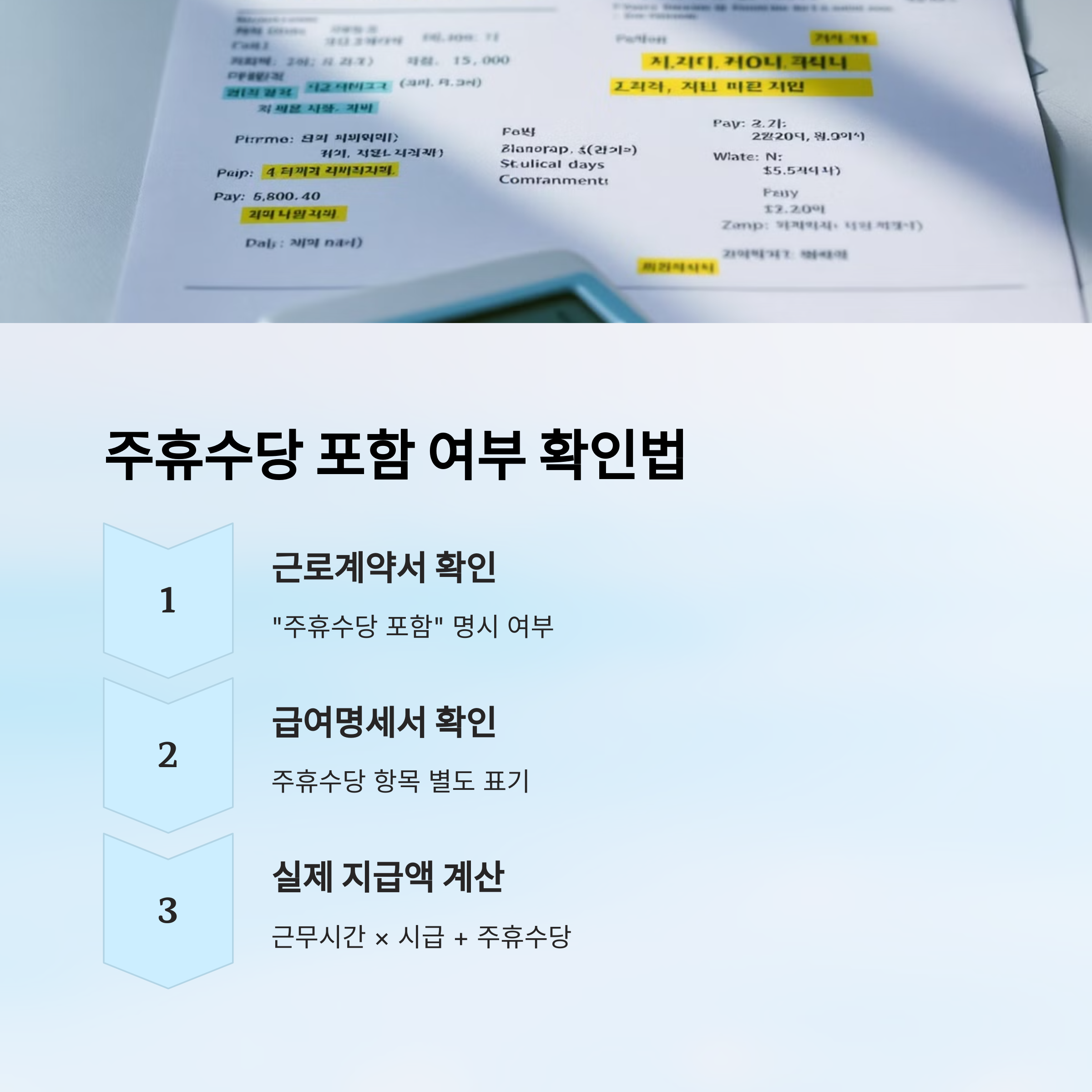 자, 가장 중요한 파트예요! 실제로 월급이나 시급을 받고 있지만 이게 ‘주휴수당 포함인지 아닌지’ 헷갈리는 경우가 정말 많죠? 가장 정확한 방법은 급여명세서를 확인하는 거예요.