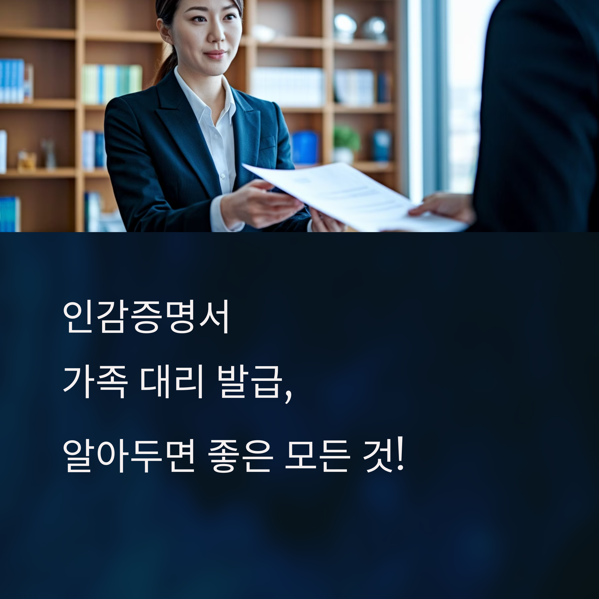 기본적으로 가족 대리와 마찬가지로 위임장과 대리인의 신분증이 필요하지만, 추가적으로 신청인의 인감증명서와 인감도장이 찍힌 위임장이 필수로 요구돼요.