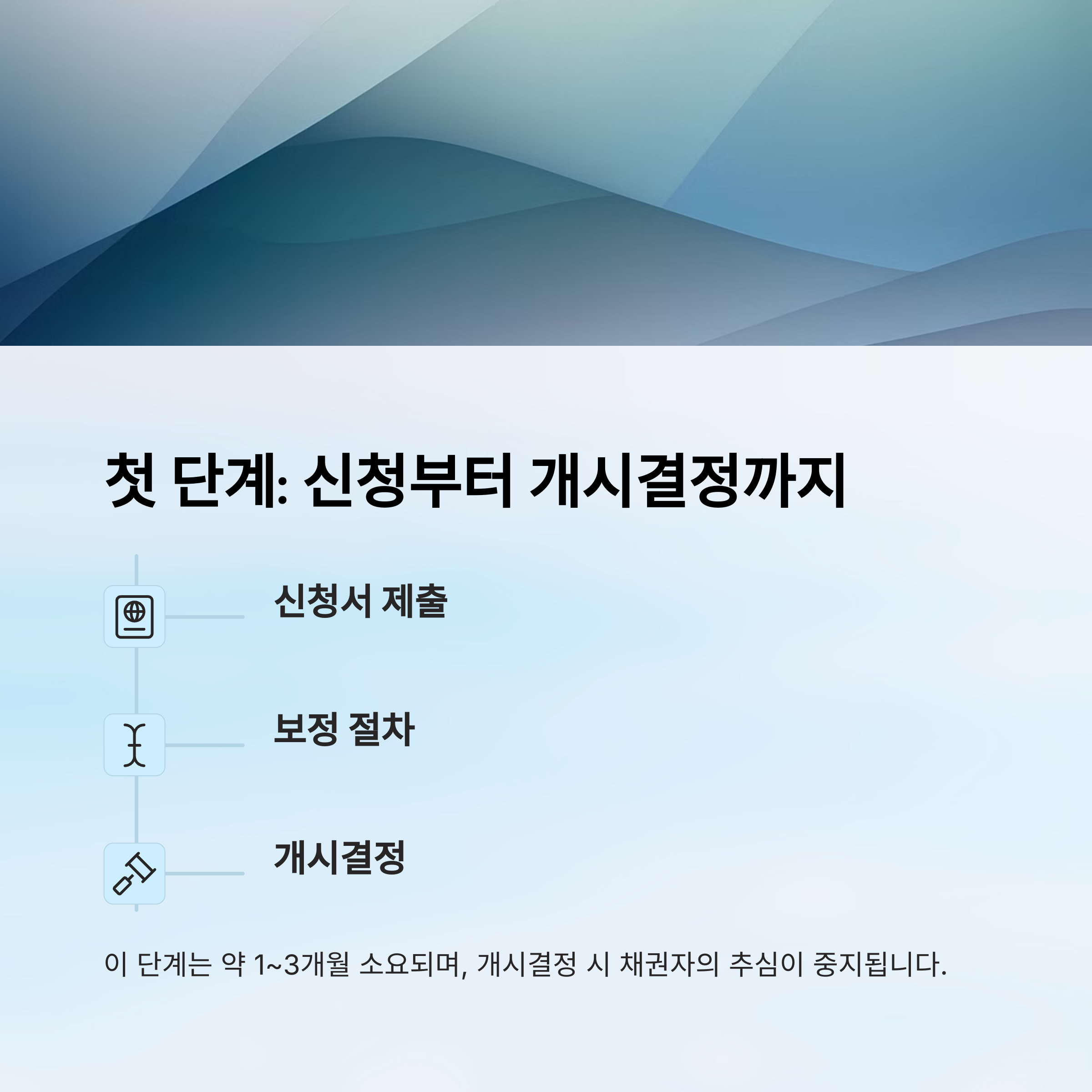 | 개시결정 | 1~2개월 | 법원 서류 심사, 채권자 통지 |