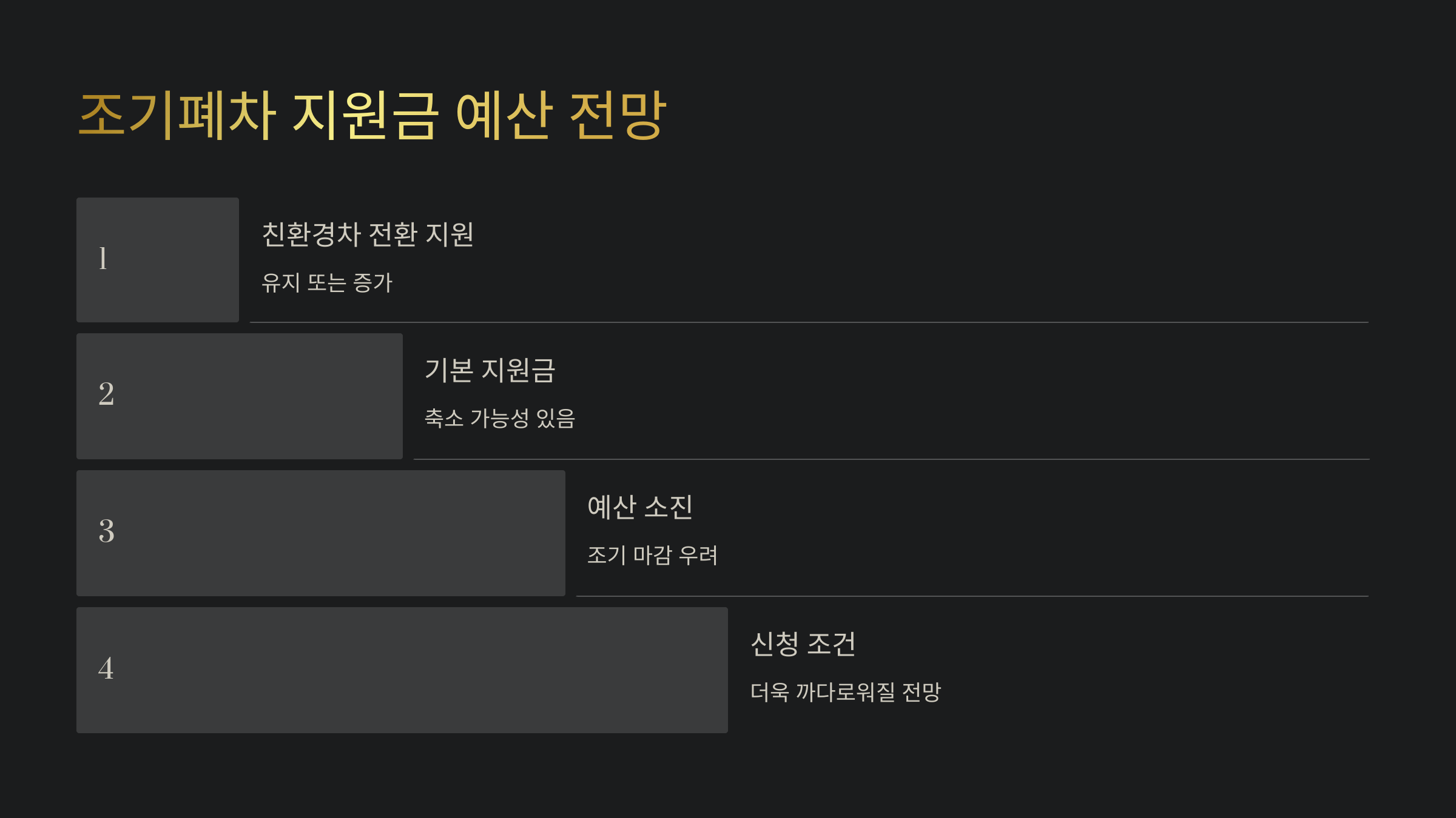 🔹 조기폐차 지원금 감액될 가능성? 예산 변화 전망