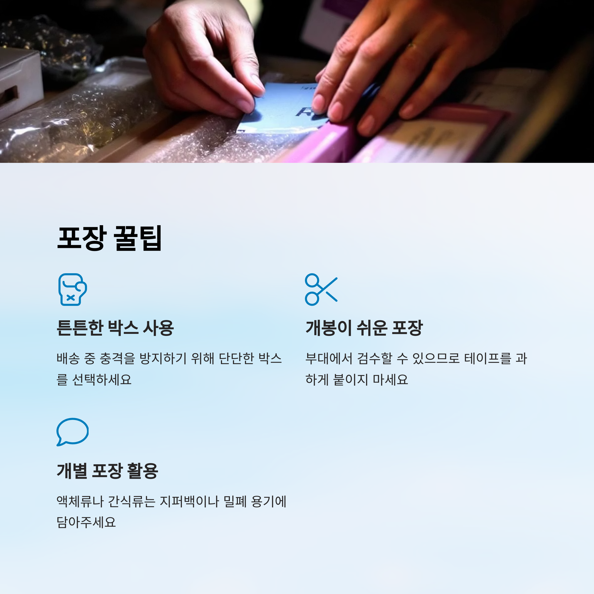 - 📦 주소 라벨은 선명하게: 배송 중 지워지지 않도록 방수 테이프 사용 추천.