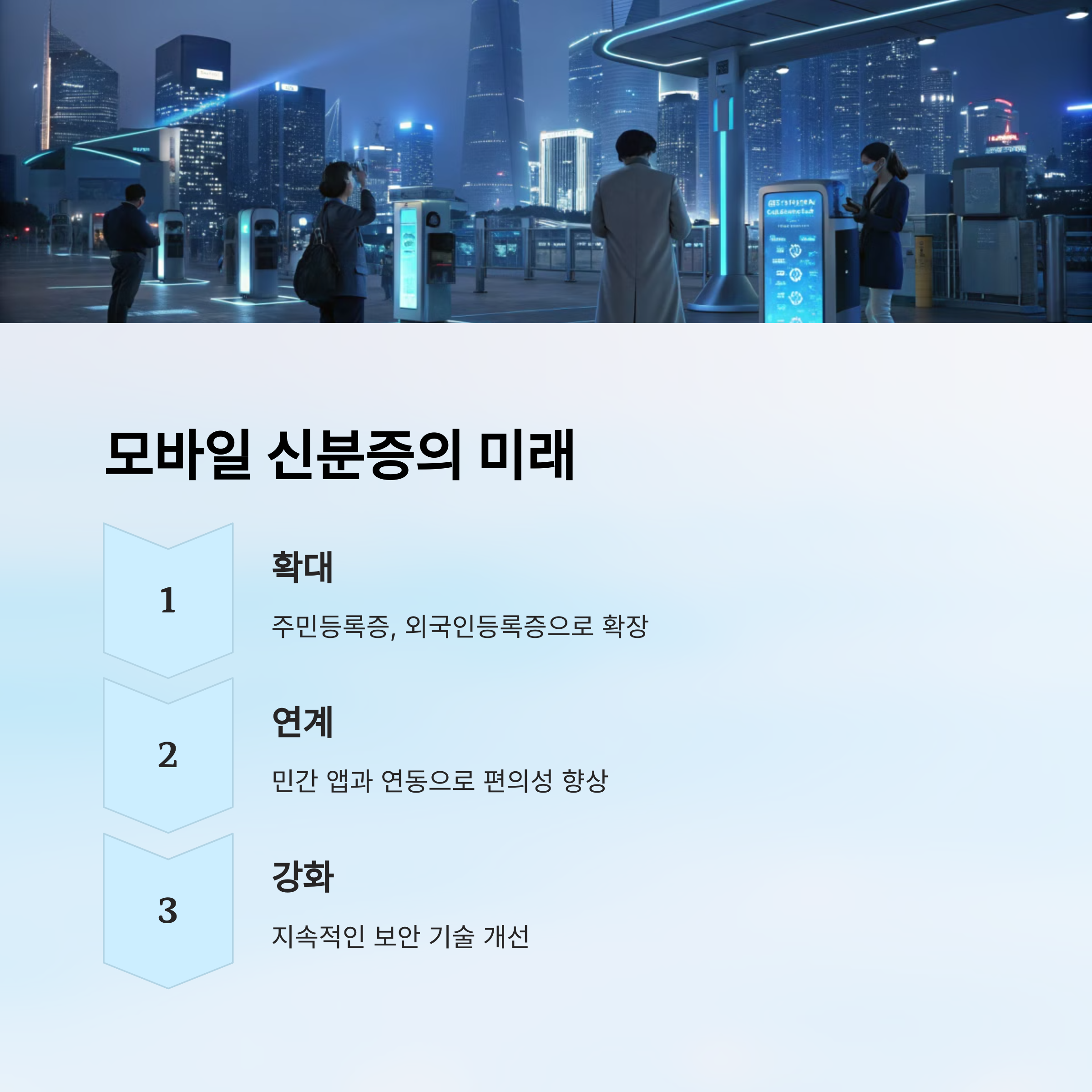 모바일 신분증은 앞으로 더욱 발전할 전망이에요. 현재는 운전면허증, 주민등록증 등이 디지털화되고 있지만, 앞으로는 여권, 학생증, 의료보험증 등 다양한 신분증도 모바일로 이용할 수 있을 거예요.