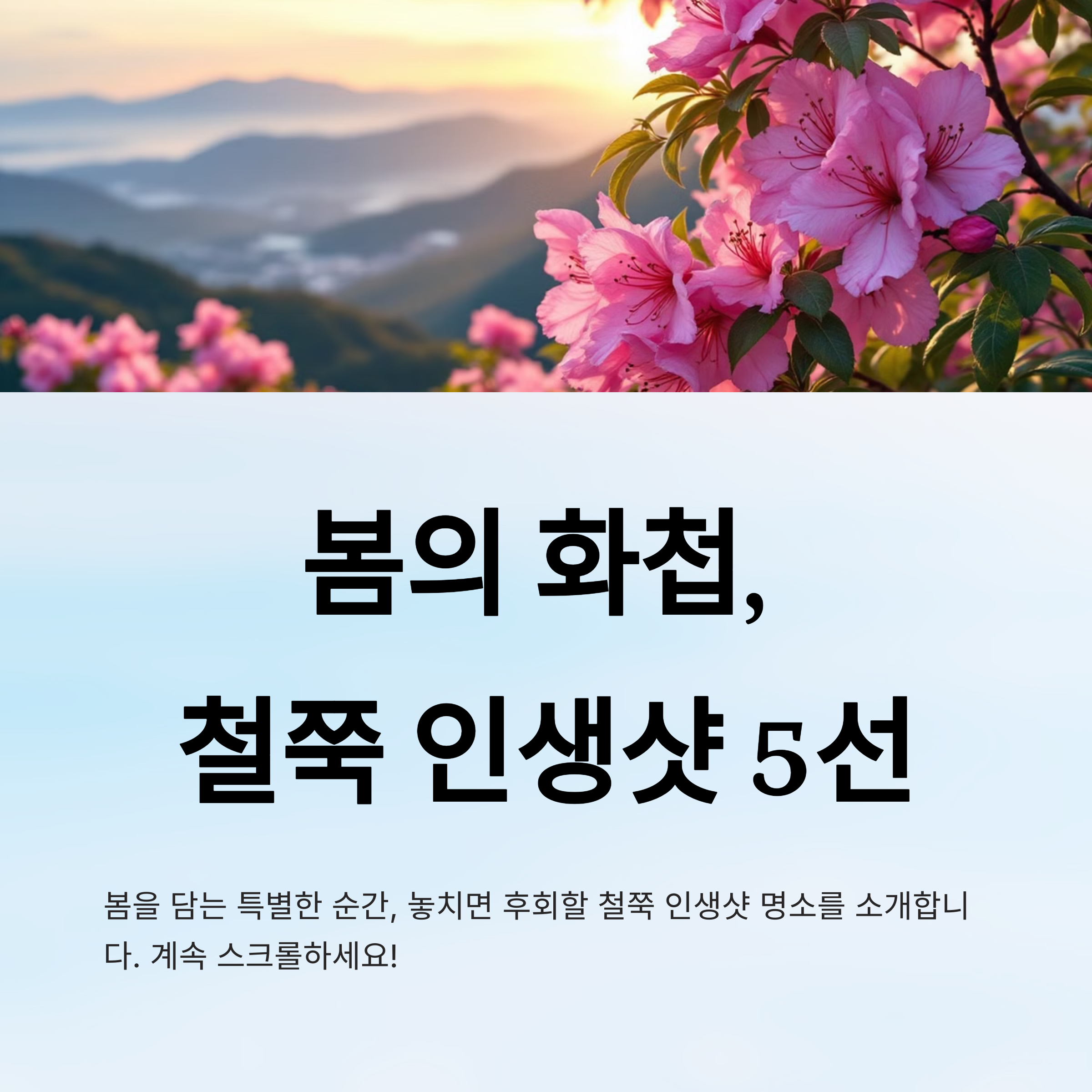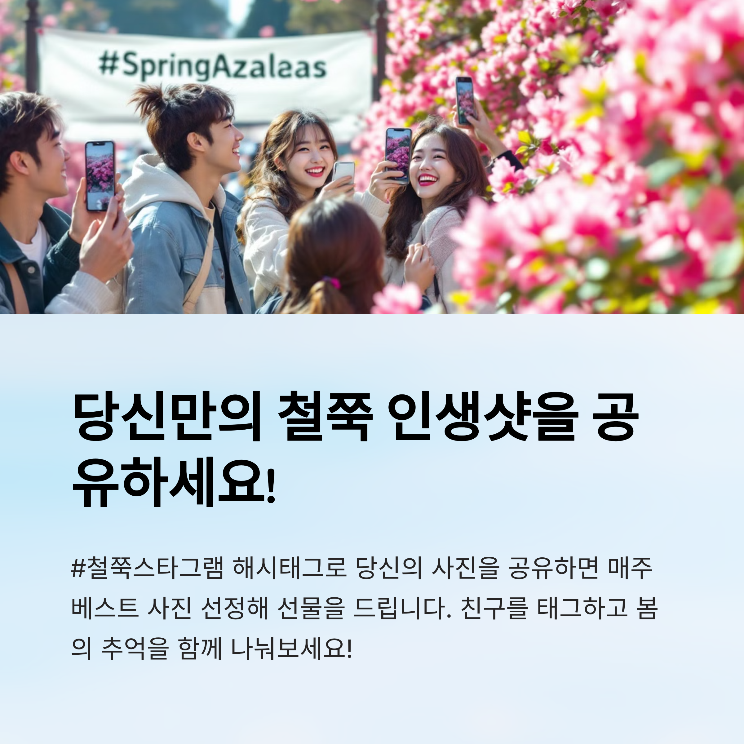 봄바람 불어오는 4월, 철쭉이 피는 계절엔 어디서 찍어도 화보가 되는 마법 같은 순간이 찾아와요. 연분홍빛 철쭉과 함께라면 인생샷은 물론 감성 가득한 사진이 저절로 남겨지죠. 그래서 오늘은 📸 철쭉 인생샷 포인트 BEST 5를 소개할게요!