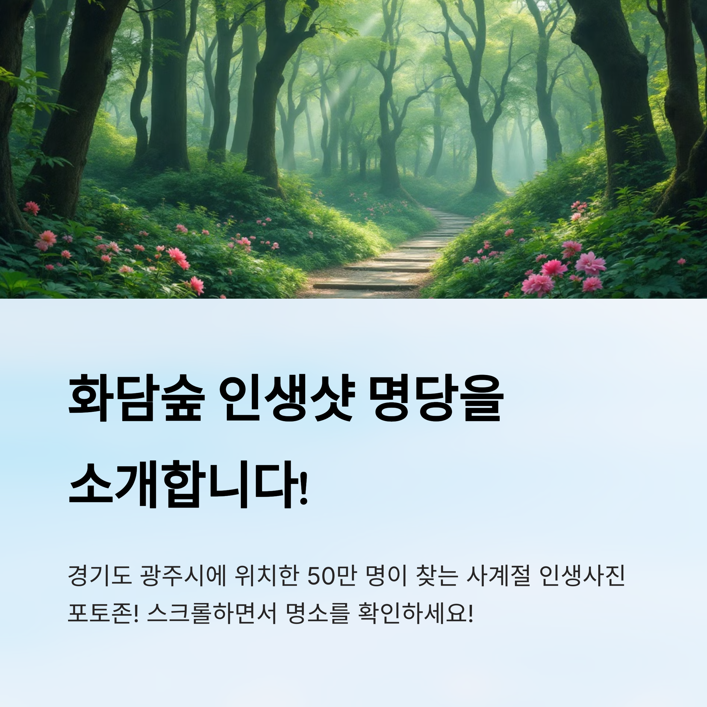 🤗 좋아요! 그럼 이제 본격적으로 화담숲의 베스트 포토존들을 소개해볼게요! 곧이어 아래에 이어지는 글로 다음 섹션을 자동으로 보여줄게요! 📸 지금부터는 화담숲 포토존의 매력적인 명소들을 계절별로 하나씩 만나보자구요!