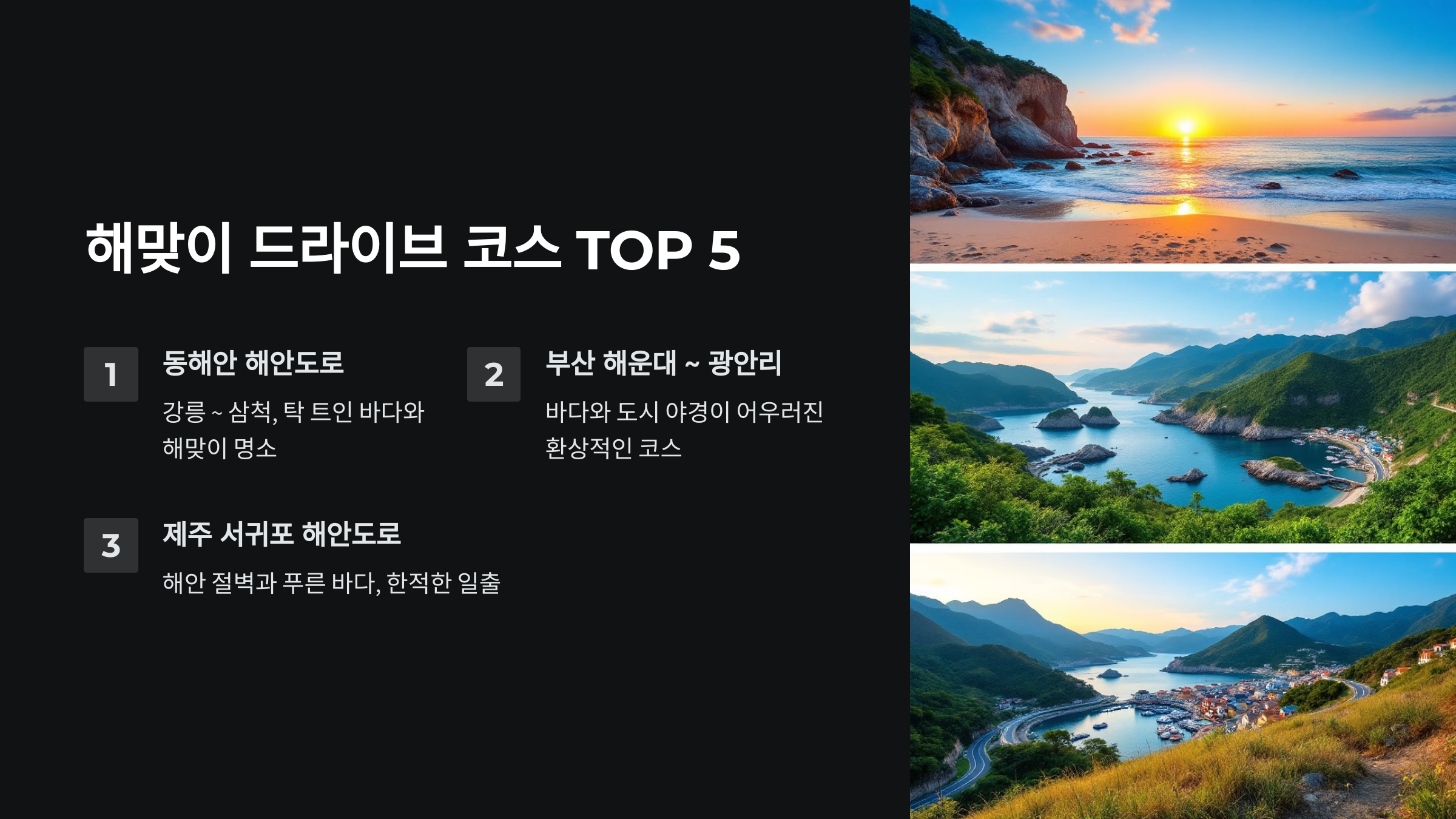 1. 🌅 동해안 해안도로 드라이브 코스 (강원도 강릉 ~ 삼척)