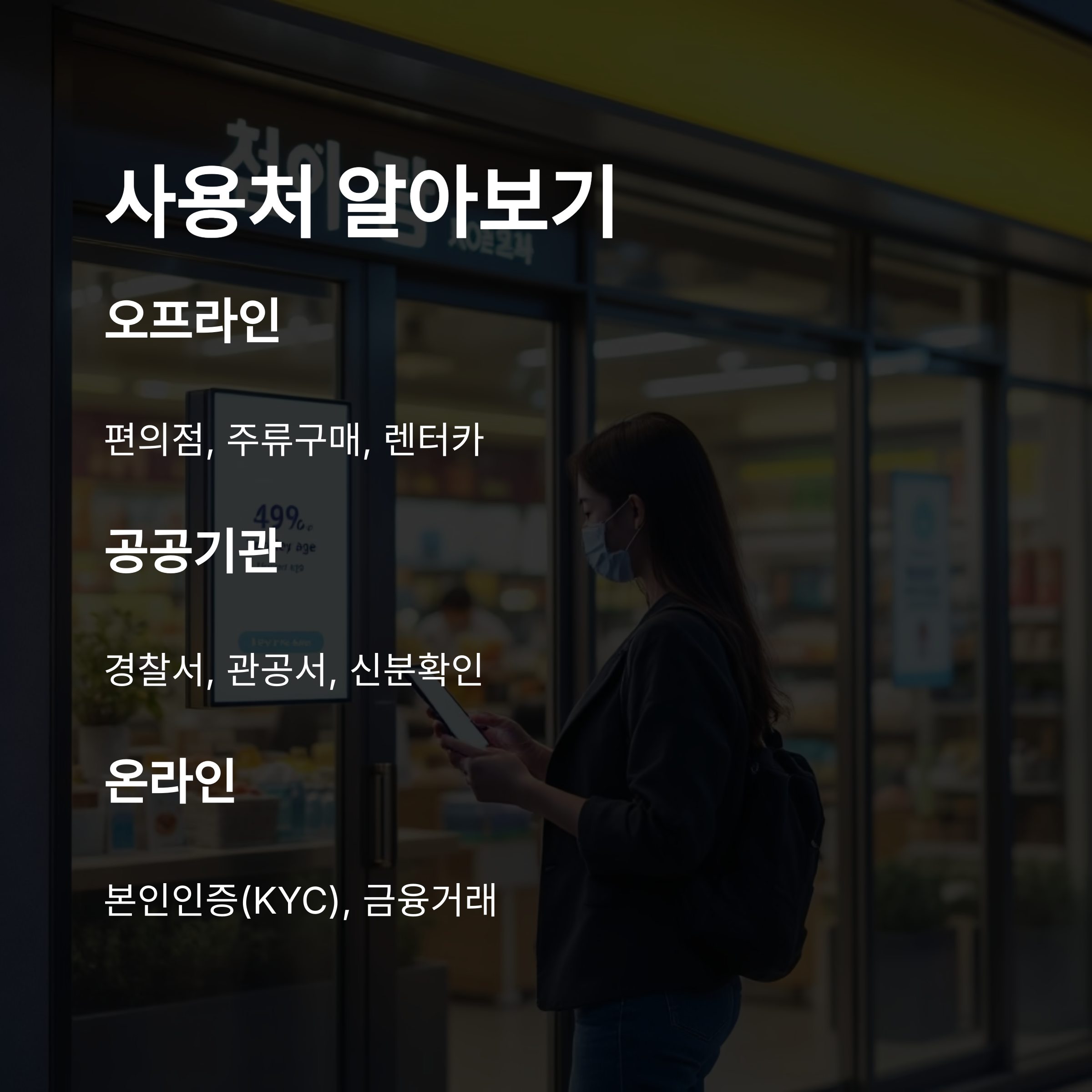 ✔️ 편의점/마트 : 담배나 술을 구매할 때 성인 인증용으로 사용 가능해요.