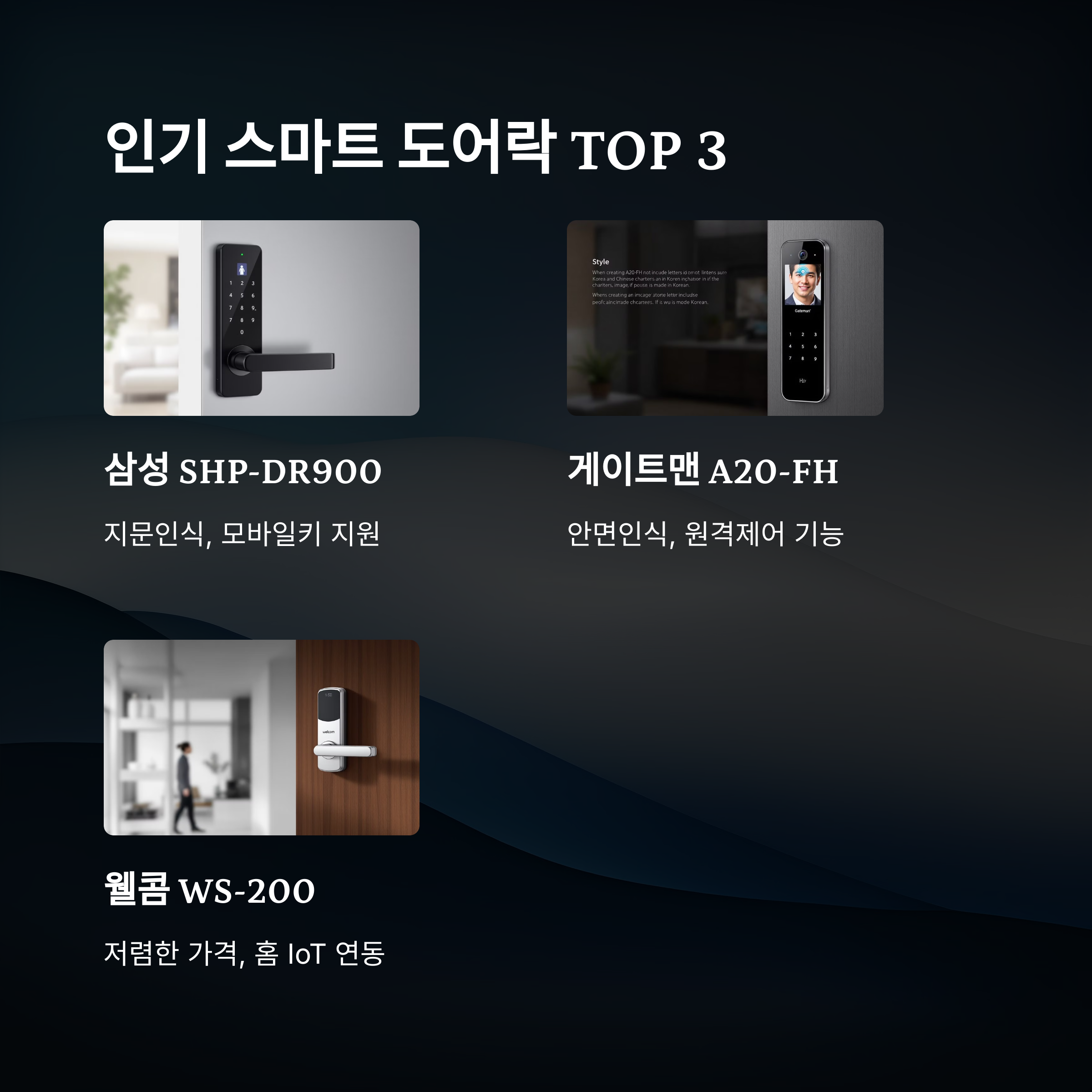 스마트 도어락을 선택할 땐 단순히 “예쁜 것”보다, 우리 집 구조와 사용 패턴에 딱 맞는 기능을 갖춘 제품이 중요해요. 아래는 소비자 평점, 후기, 기능 만족도를 바탕으로 엄선한 5대 추천 제품이에요.