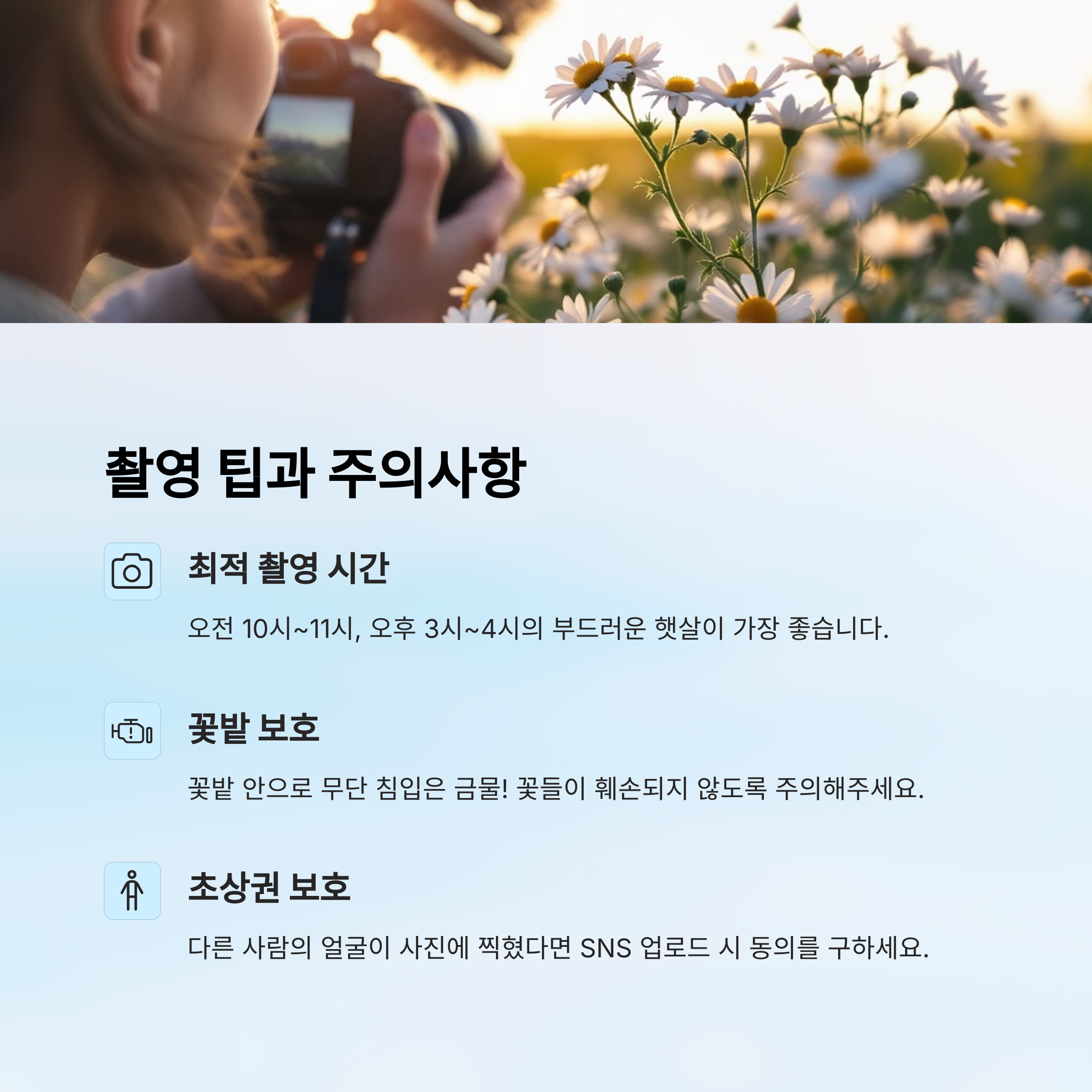 📷 촬영 팁과 주의사항