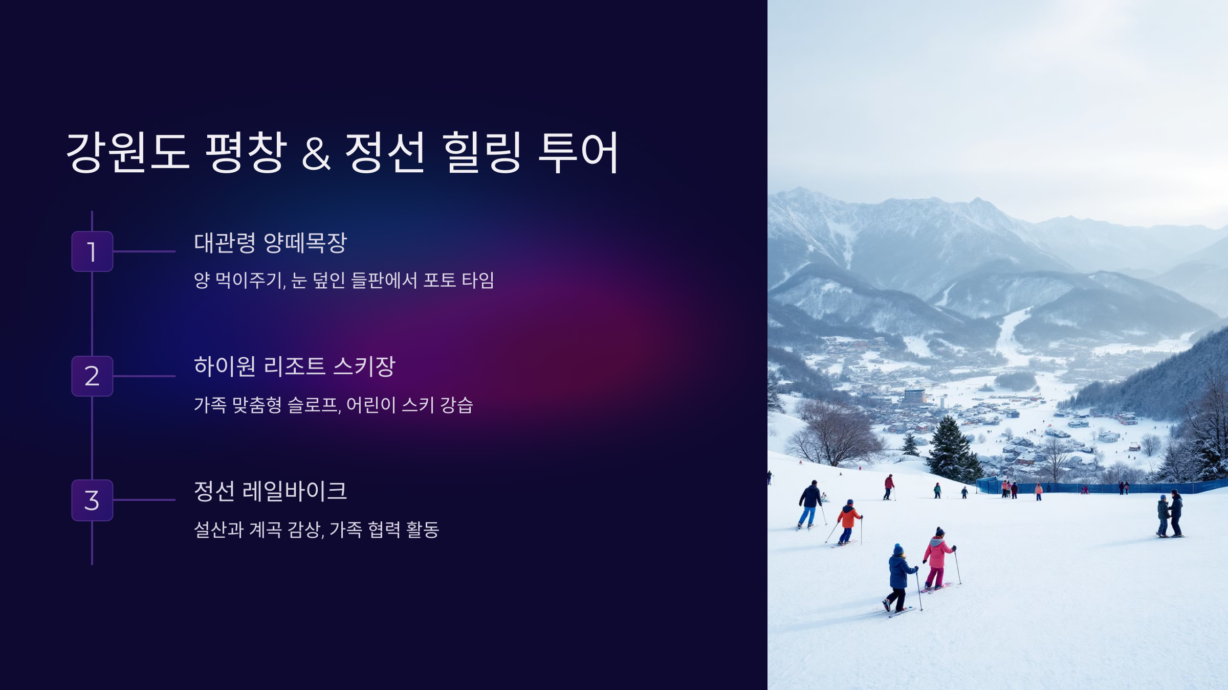 추천 코스 1: 강원도 평창 & 정선 힐링 투어 🌲❄️