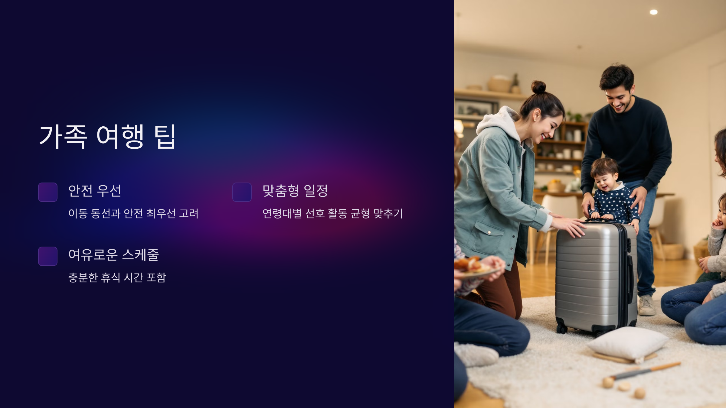 1. 안전 우선!: 아이들과 어르신이 함께라면 이동 동선과 안전을 최우선으로 고려하세요.