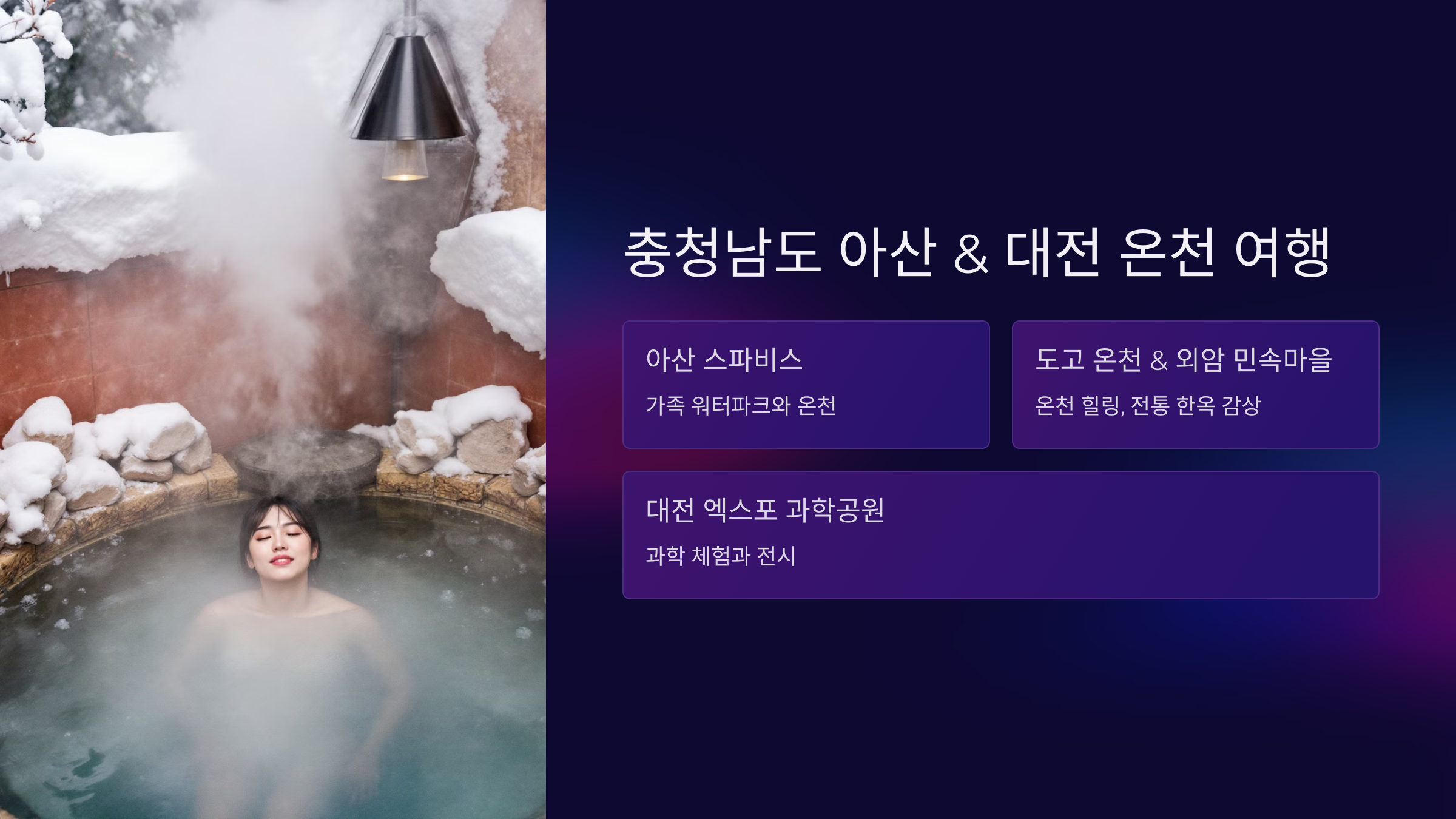 추천 코스 4: 충청남도 아산 & 대전 온천 여행 ♨️