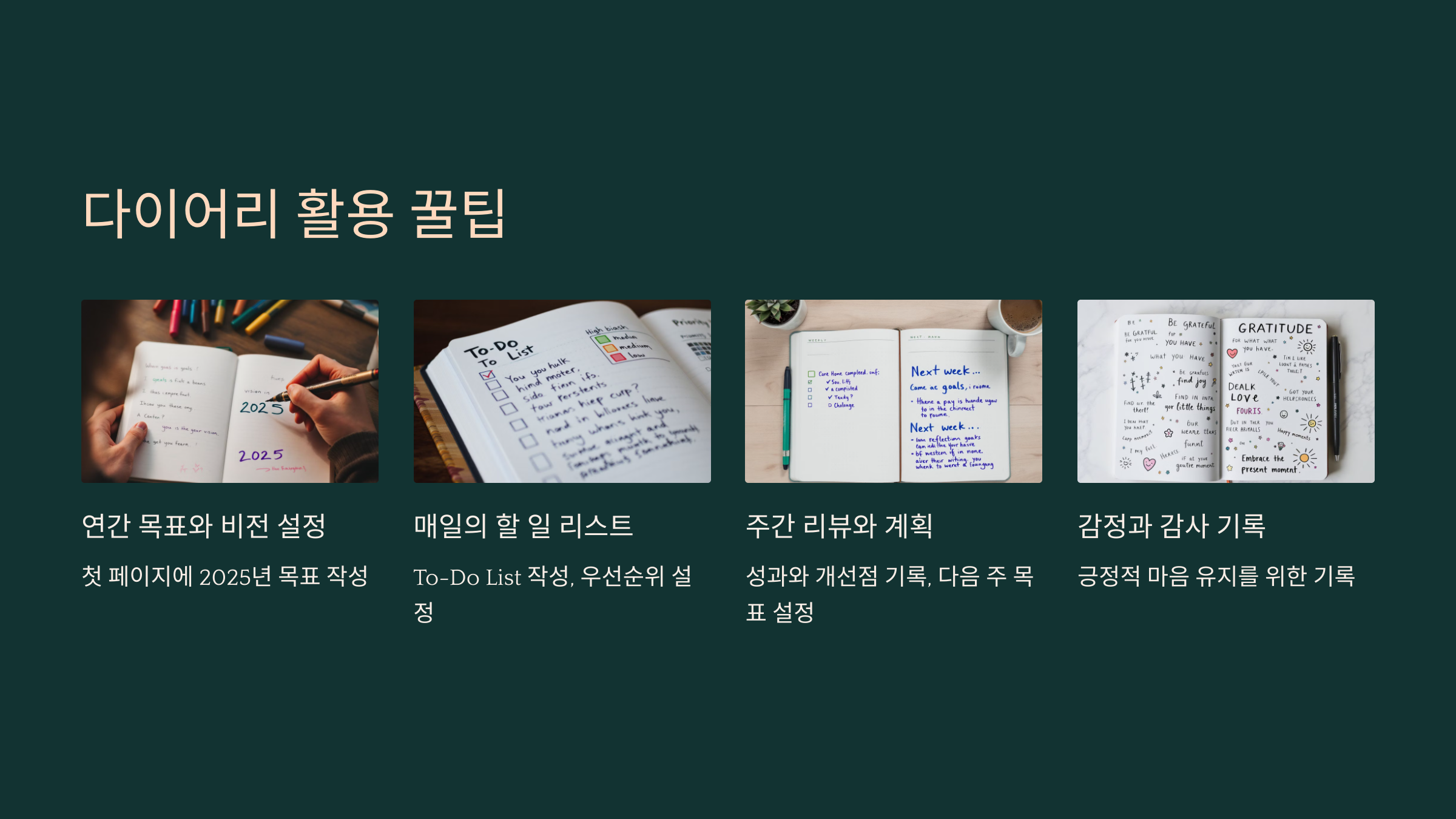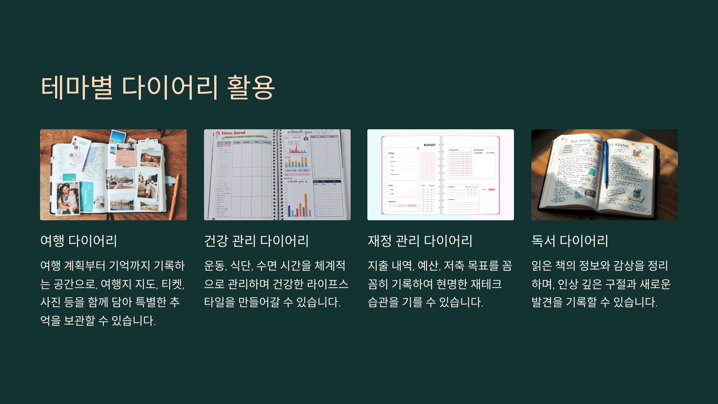 단순히 일정 관리뿐 아니라, 다이어리를 더 특별하게 활용하는 다양한 방법을 소개합니다.