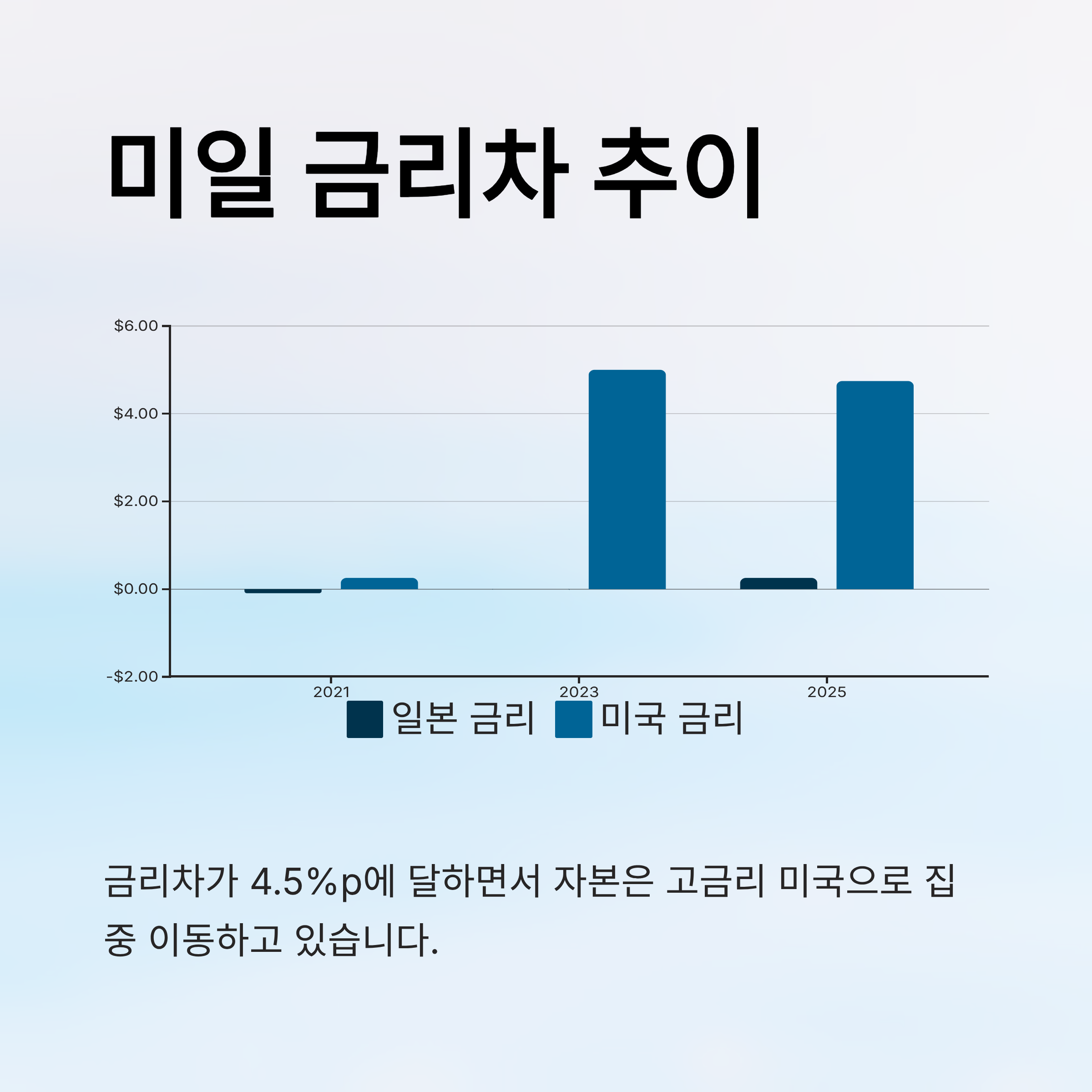 2025년 현재도 일본은행은 소극적인 통화정책을 고수하고 있어요. 반면 미국과 유럽은 여전히 높은 금리를 유지하고 있어서, 양국 간 금리 차는 더 벌어지고 있죠. 이 금리 차가 외환 시장에서 엔화를 더욱 매도하게 만드는 배경이 돼요.