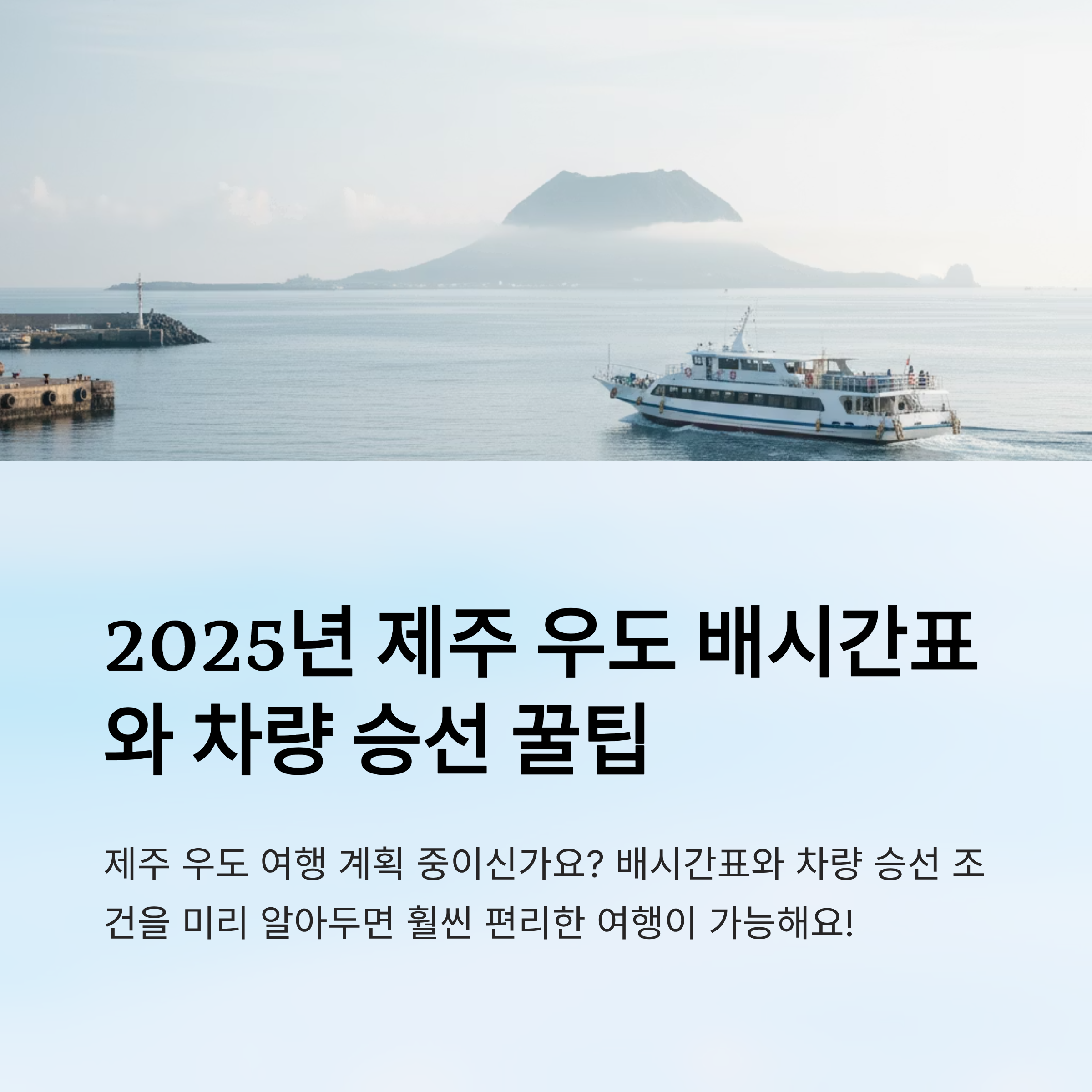 제주도 우도 여행을 계획하고 있다면 배시간표와 차량 승선 조건을 꼭 알아두는 게 좋아요. 우도는 아름다운 해변과 독특한 풍경으로 유명한 섬이라 많은 여행객이 찾지만, 입도 규정과 배편 일정이 까다로워서 사전 준비가 필수랍니다.