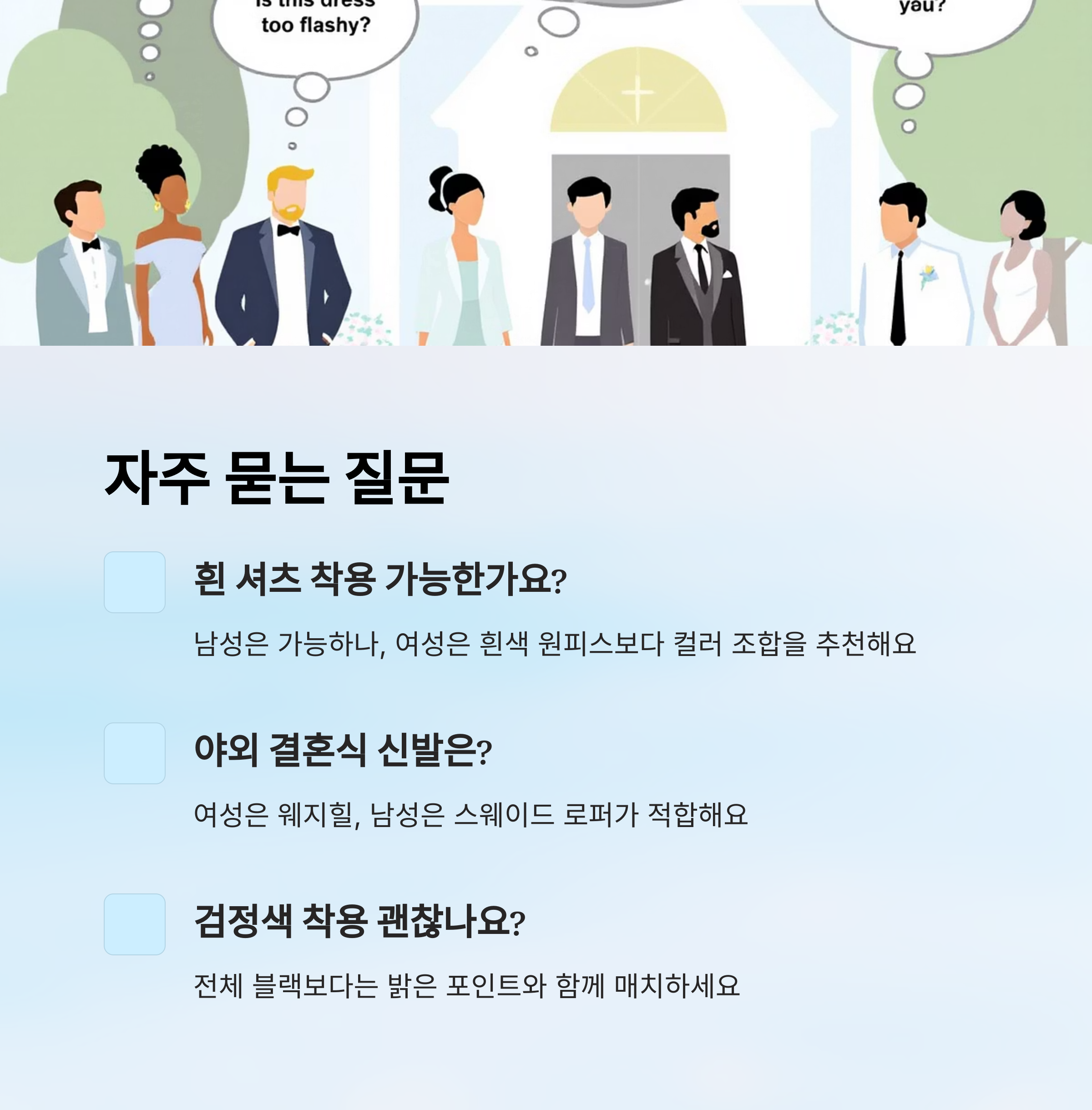 Q1. 하객으로 흰 셔츠 입어도 되나요?