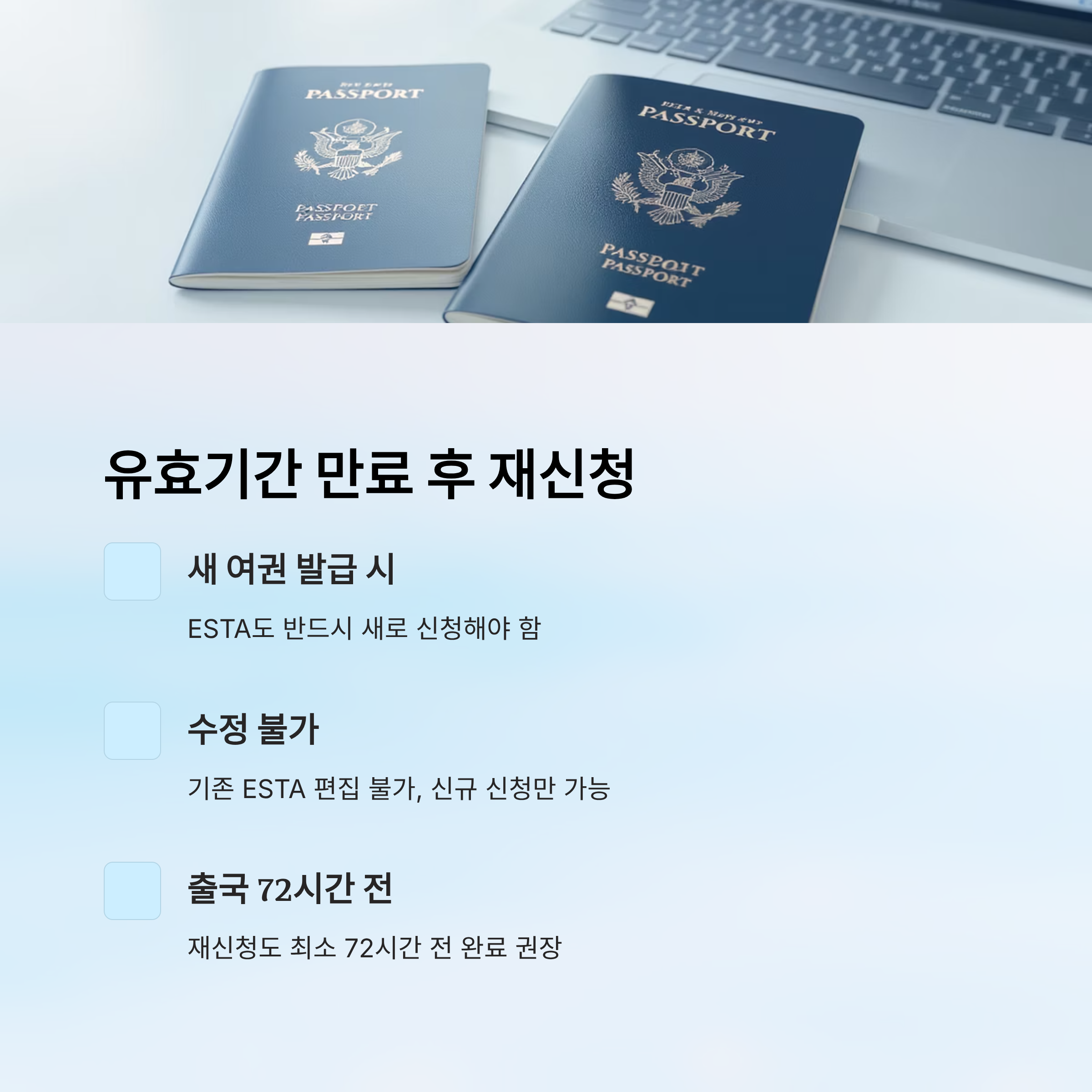 | 여권 변경 시 | ESTA도 새로 신청해야 함 |