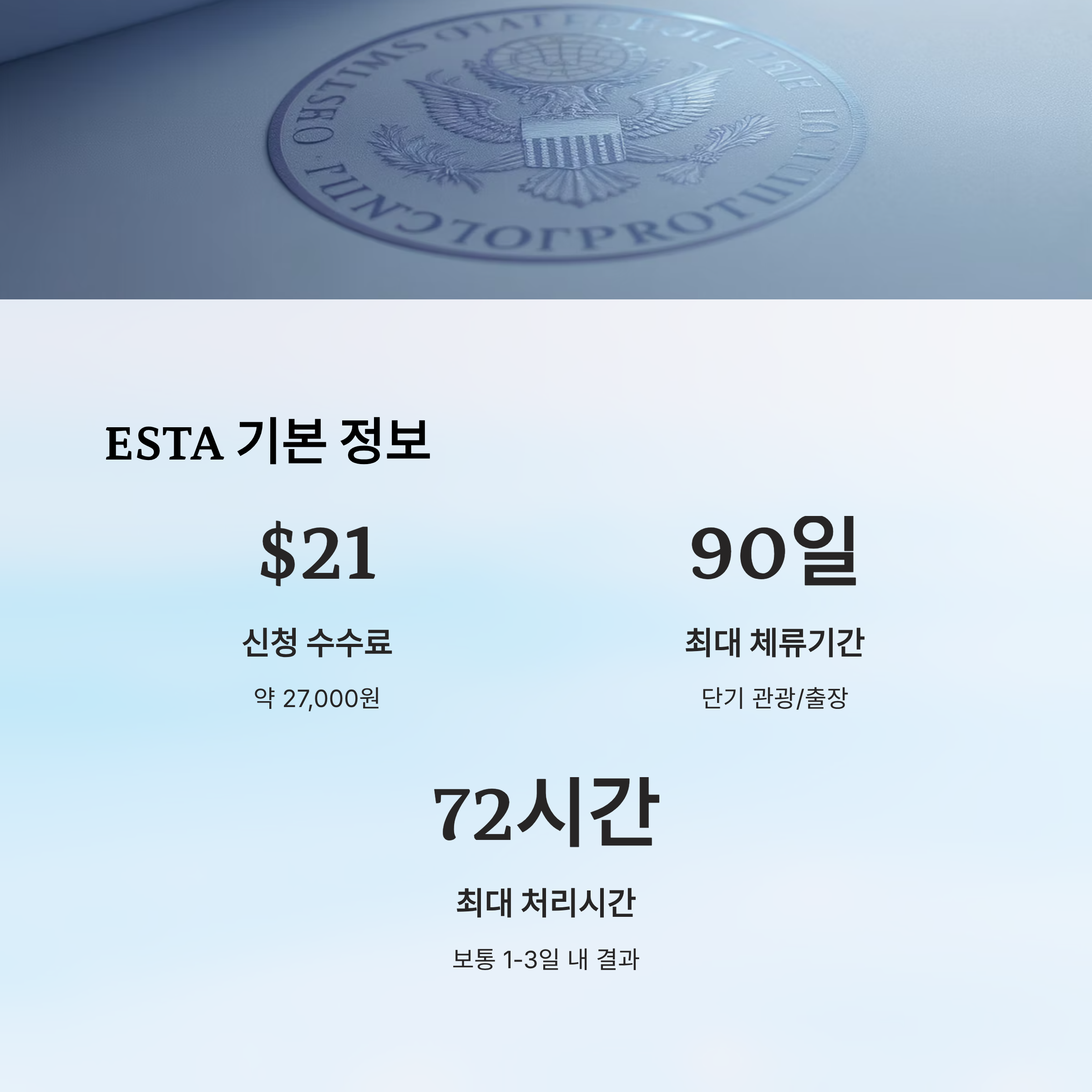 2025년 현재 ESTA 신청은 미국 공식 홈페이지(https://esta.cbp.dhs.gov)에서만 가능하며, 한화 약 2만 7천 원(미화 21달러)의 수수료가 발생해요. 신청 후 결과는 보통 1~3일 내에 나와요.