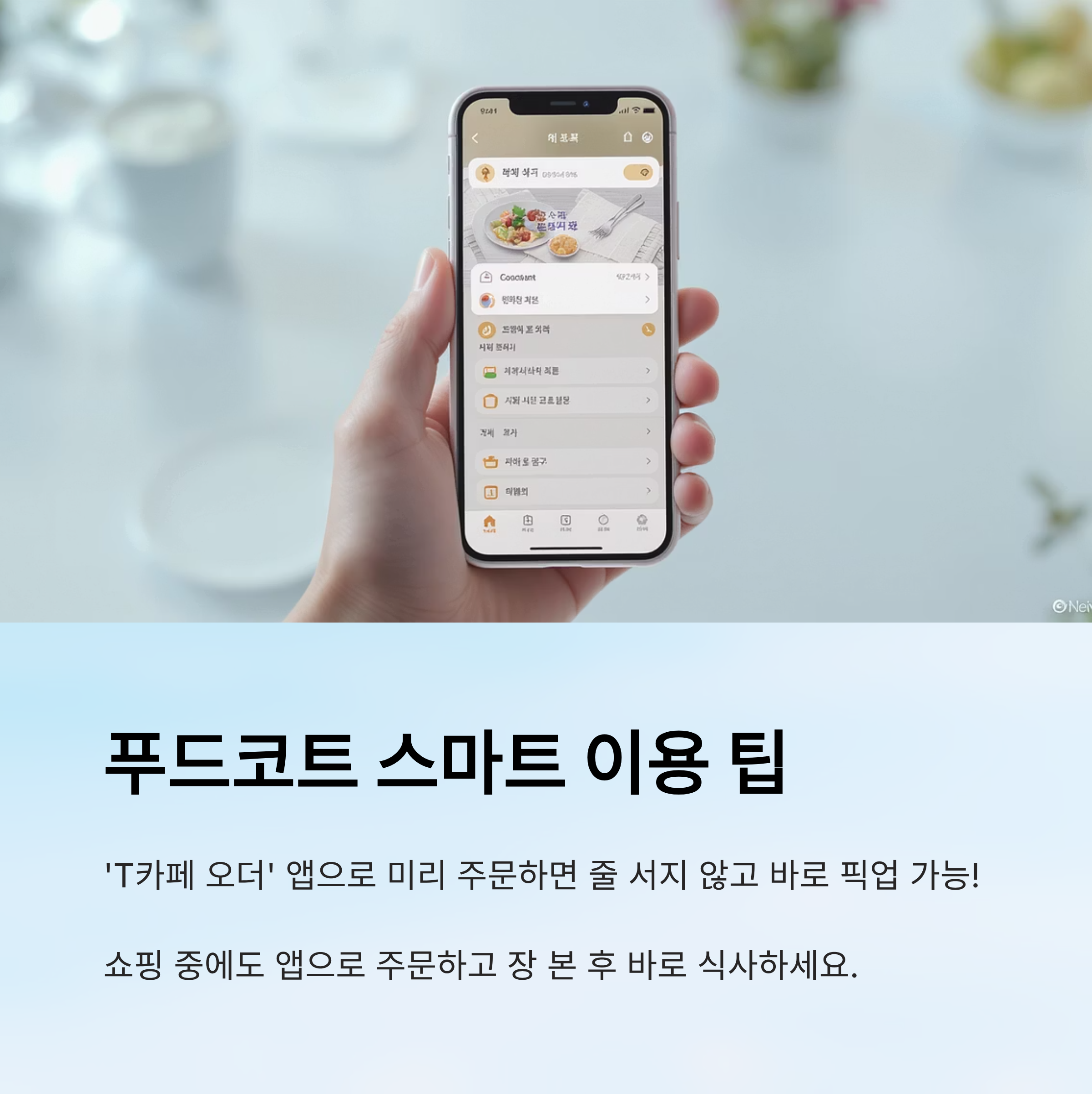 다만, 주말 점심 시간에는 줄이 길어질 수 있어요. 이럴 땐 ‘T카페 오더’ 앱을 활용하면 미리 주문·결제가 가능해 기다림 없이 바로 음식 픽업이 가능해요.