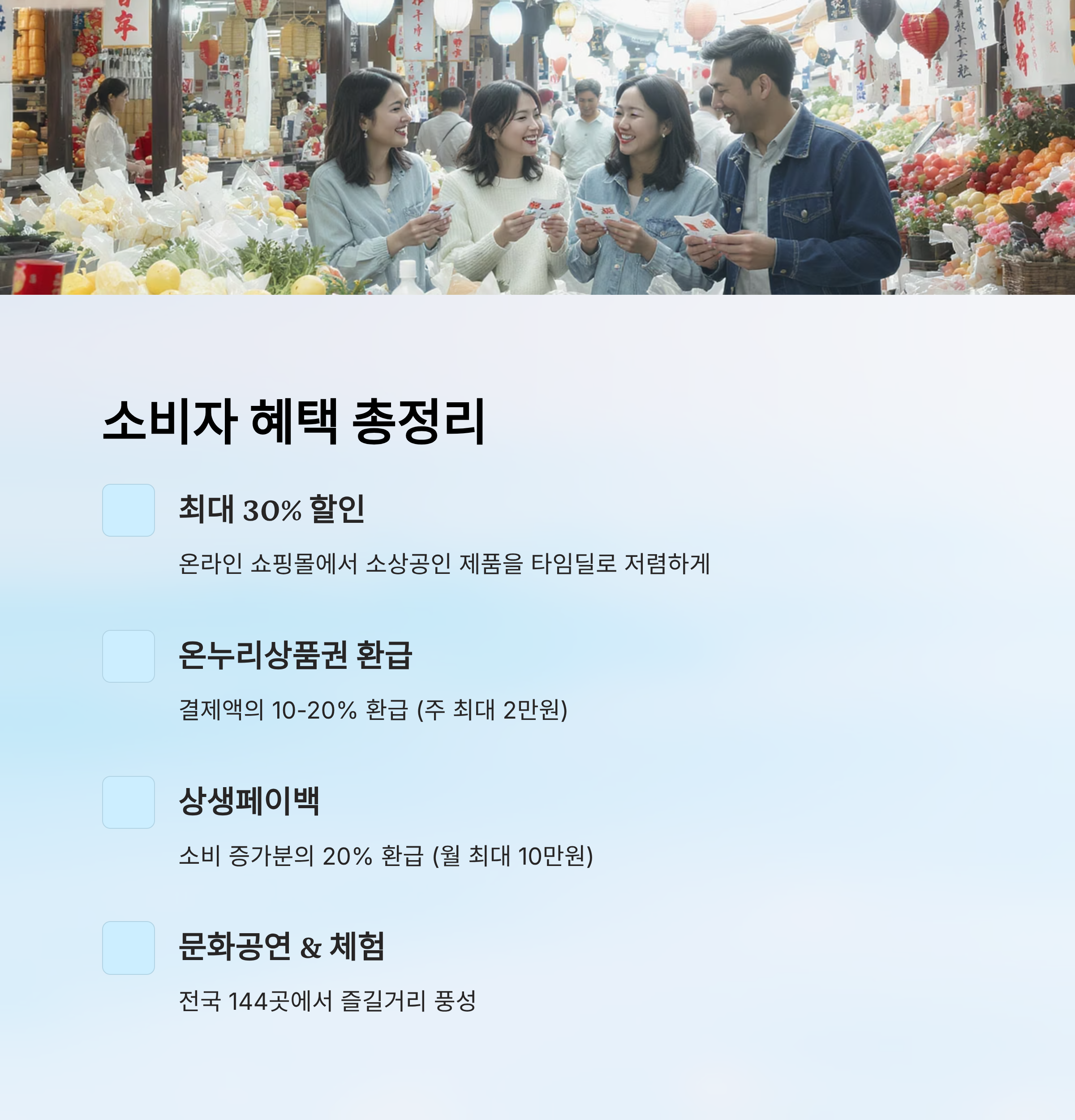 표를 보면 소비자가 참여할 수 있는 방식이 다양하고, 혜택도 크다는 점이 눈에 띄어요. 전통시장이나 골목상권을 찾을 이유가 충분히 생긴 셈이죠 👏.