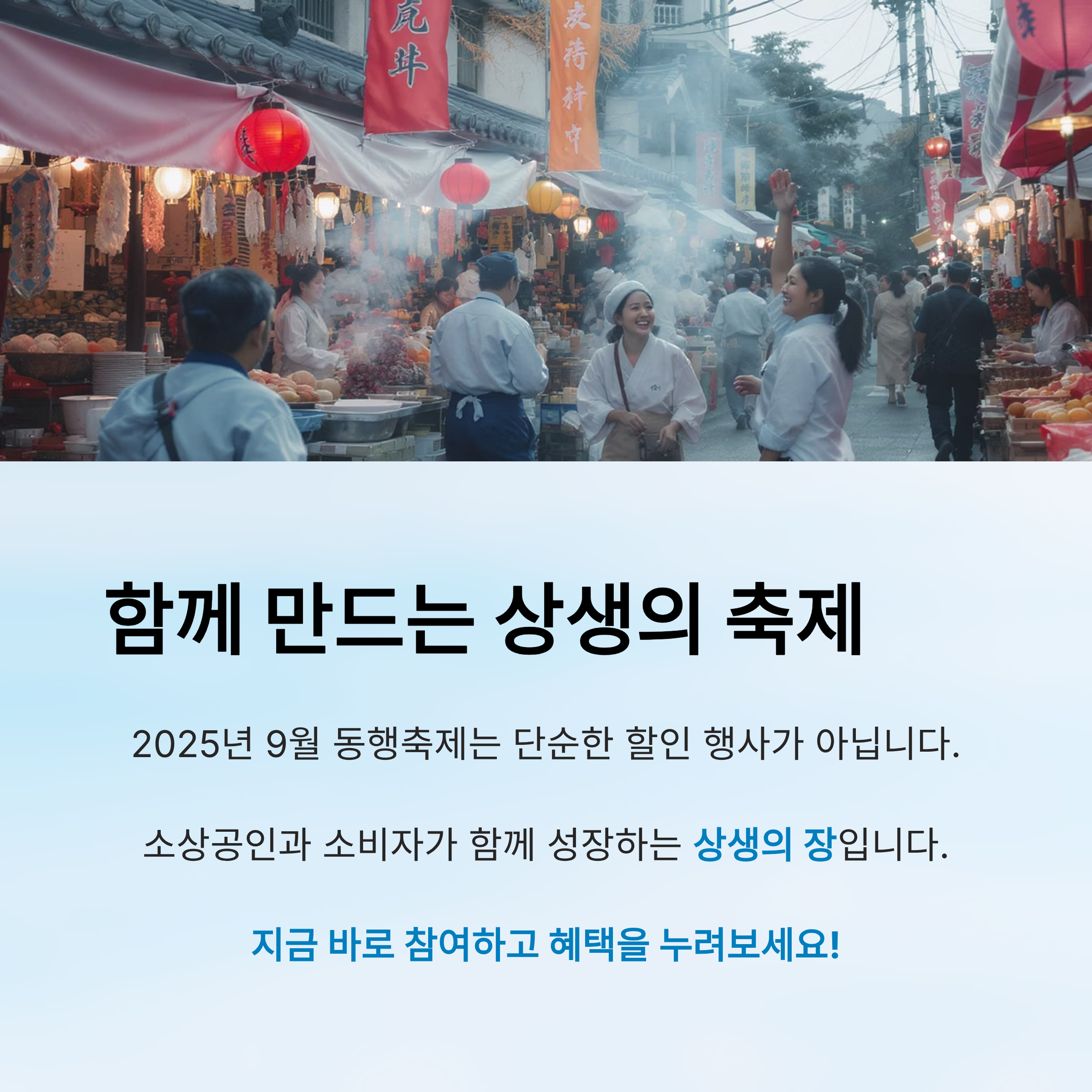 정리하면, 이번 2025년 9월 동행축제는 소비자에게는 실질적인 할인과 환급 혜택을, 소상공인에게는 판로 확대와 매출 증가 기회를 주는 상생형 축제예요. 온라인·오프라인 어디서든 참여할 수 있으니, 꼭 한번 즐겨보시길 추천합니다 🙌.
