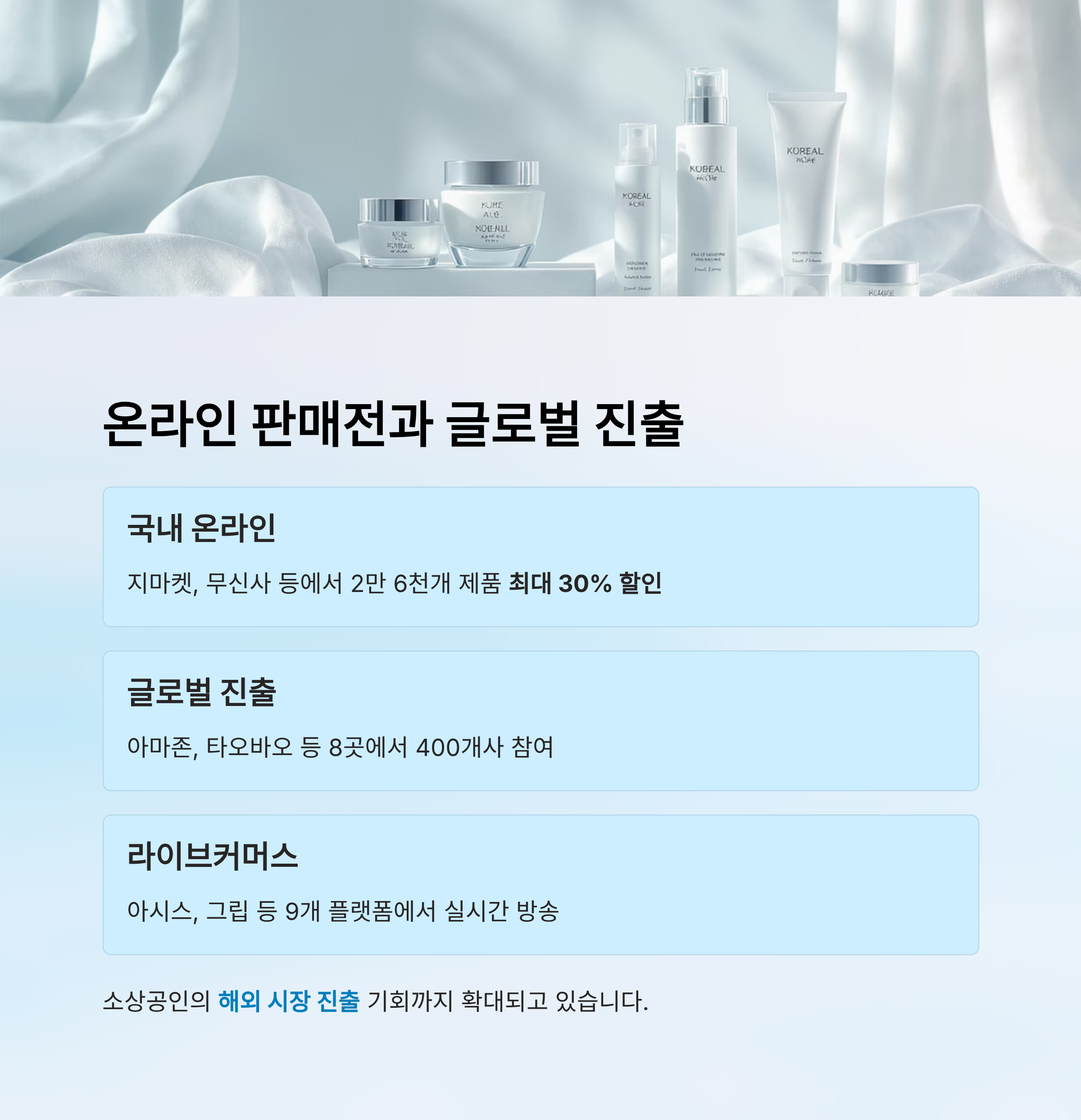 이 표를 보면 온라인 판매전이 단순히 국내 할인 행사에 머무르지 않고, 글로벌 시장과 연결되며 소상공인에게 더 넓은 기회를 열어주고 있다는 점이 잘 드러나요. 소비자 입장에서는 더 많은 선택지를, 소상공인 입장에서는 더 큰 시장을 만날 수 있는 거죠 🙌.
