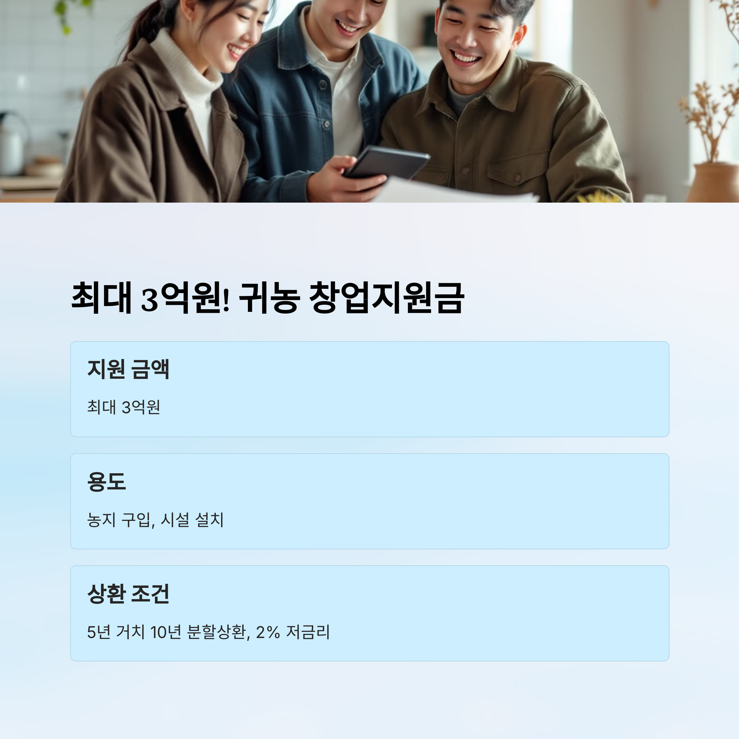 📎 관련 글 보기: “귀농만 해도 정부에서 최대 3억 원까지! 창업자금과 주택비 다 받으세요"