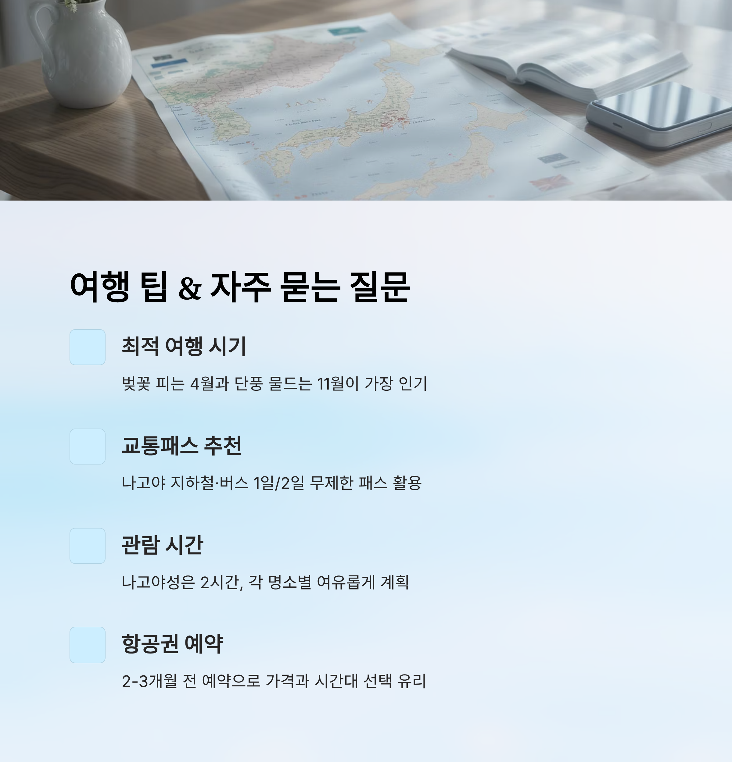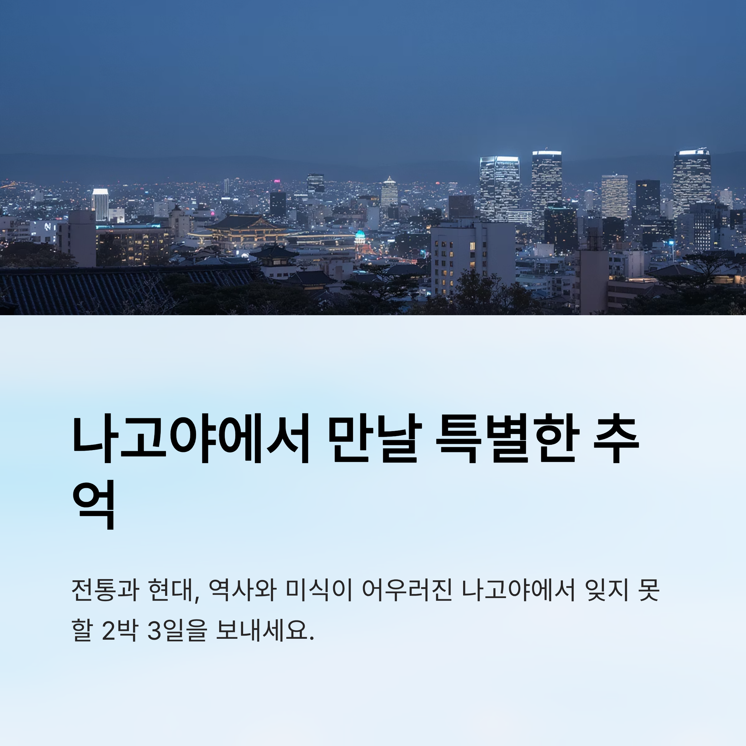 이처럼 나고야는 짧은 일정에도 다양한 매력을 즐길 수 있는 도시예요. 역사와 현대, 전통과 미래가 한곳에 담겨 있어서 처음 가는 여행자도, 여러 번 방문한 여행자도 늘 새로움을 느끼게 해줘요. 🗾