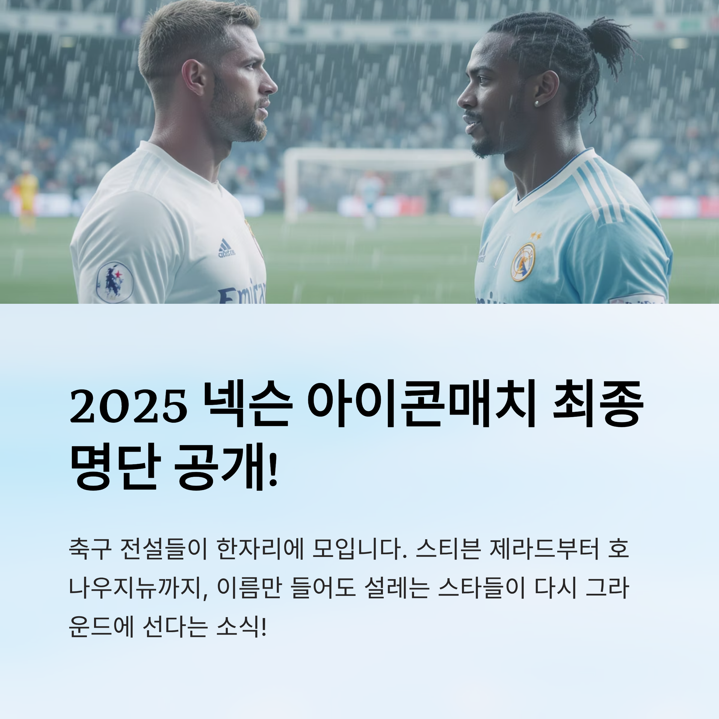 2025년 넥슨 아이콘매치 최종 명단이 드디어 공개되었어요! 이번 행사에서는 축구 팬이라면 누구나 가슴 뛰게 만들 레전드 선수들이 대거 출전해요. 영국의 심장이라 불렸던 스티븐 제라드부터 삼바 축구의 마법사 호나우지뉴까지, 이름만 들어도 설레는 스타들이 한 자리에 모인답니다. ⚽🔥