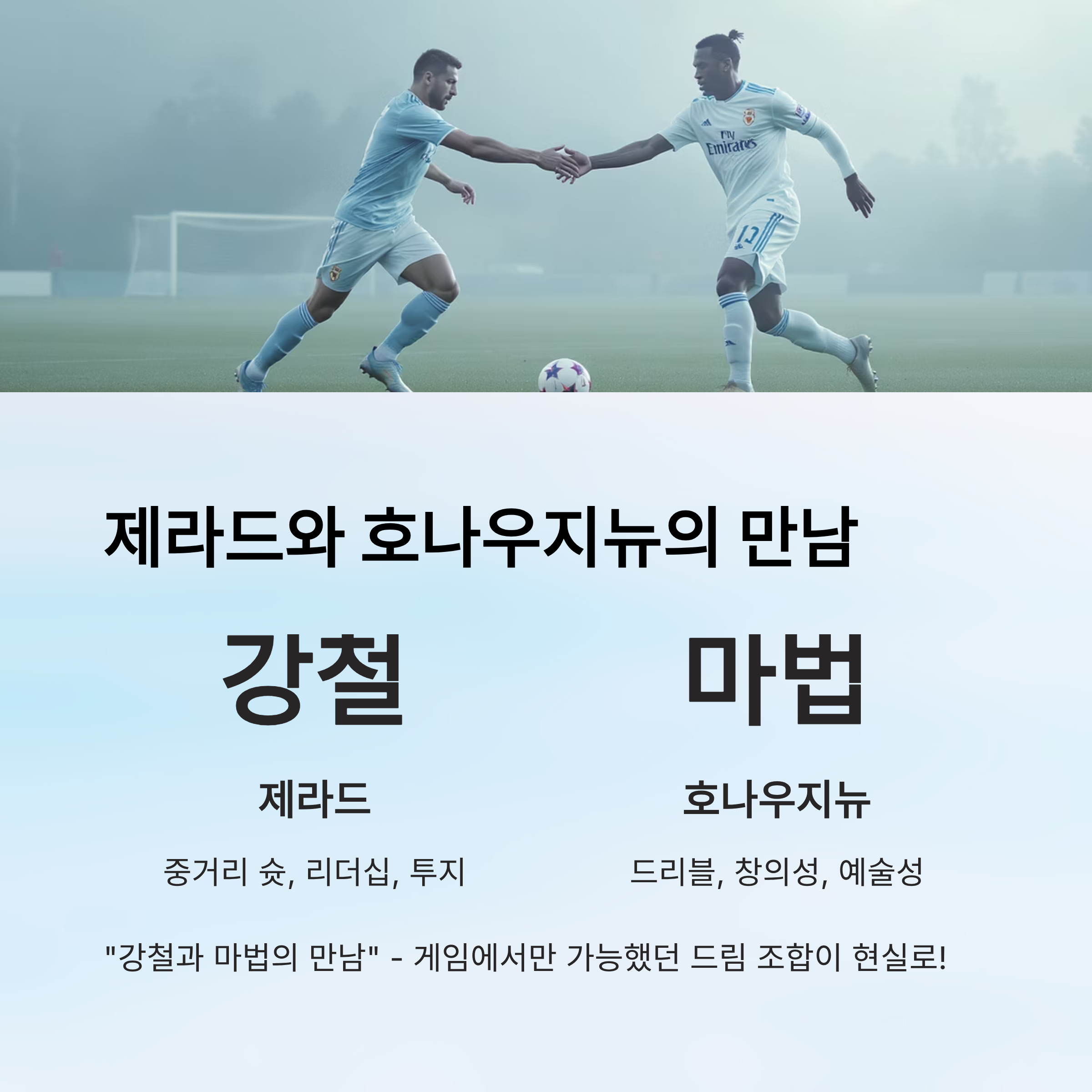 예를 들어, 제라드가 중원에서 강력한 압박과 패스를 통해 경기를 조율하고, 호나우지뉴가 그 공을 받아 예술적인 드리블과 결정적인 찬스를 만들어낼 수 있어요. 팬들은 이 조합을 "강철과 마법의 만남"이라고 표현하며 벌써부터 가슴 뛰는 순간을 기다리고 있답니다. ⚡✨