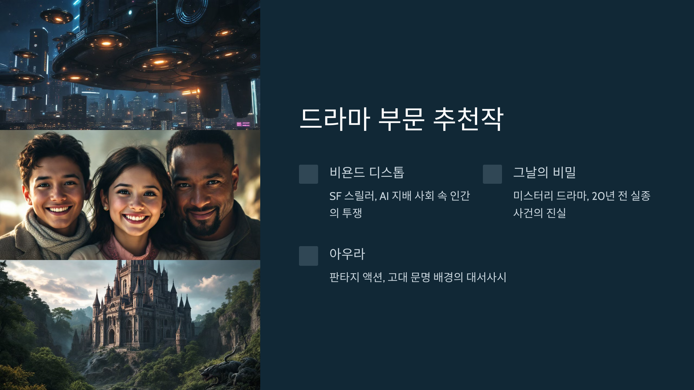 - 추천 포인트: 사회적 메시지를 담은 깊이 있는 작품.