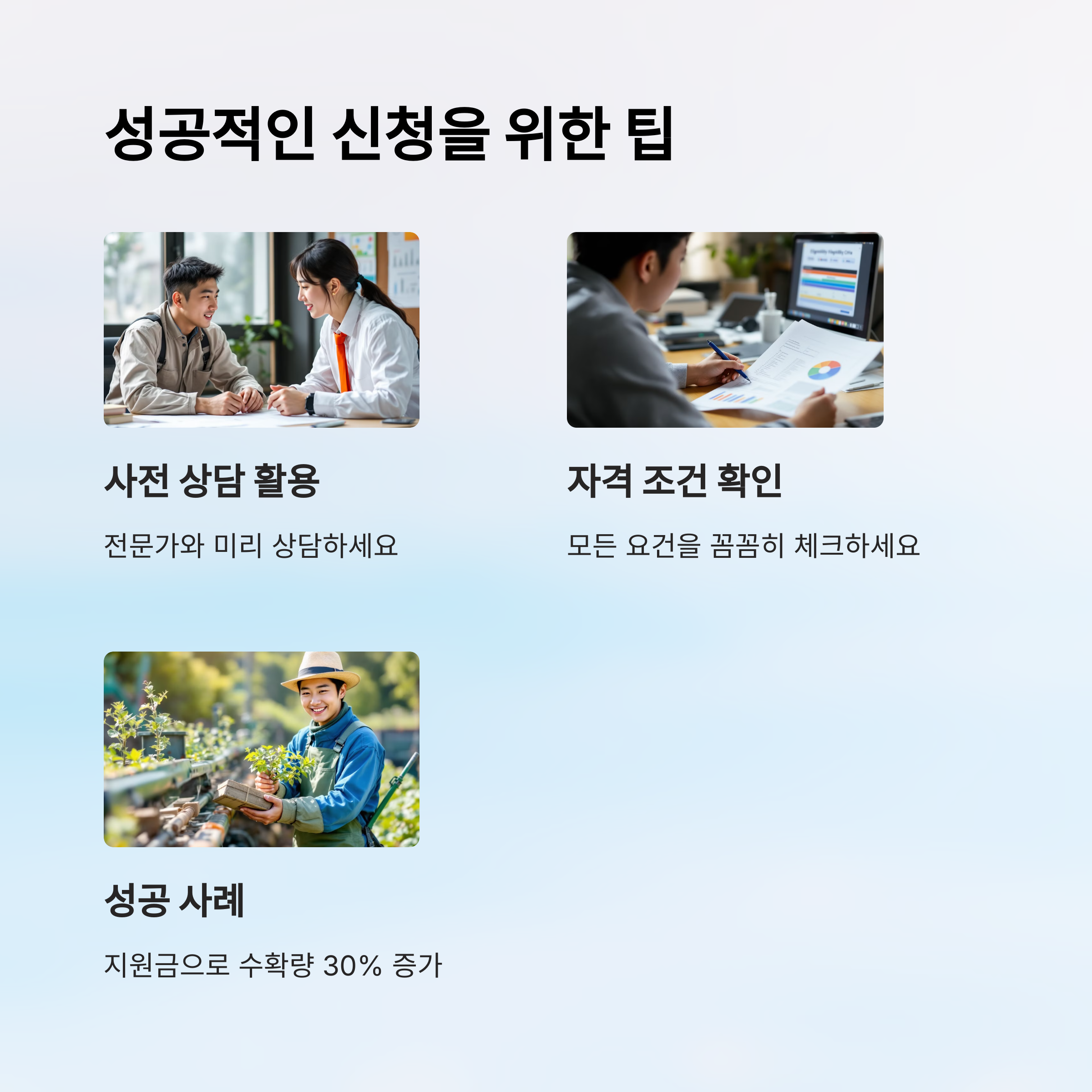 세 번째는 **지역 농업기술센터 직원과 사전 상담하기**예요. 담당자가 알려주는 소소한 팁이나 가점 요소를 잘 활용하면 평가에서 유리해질 수 있어요. 서류도 미리 검토해줘서 실수를 줄일 수 있죠.
