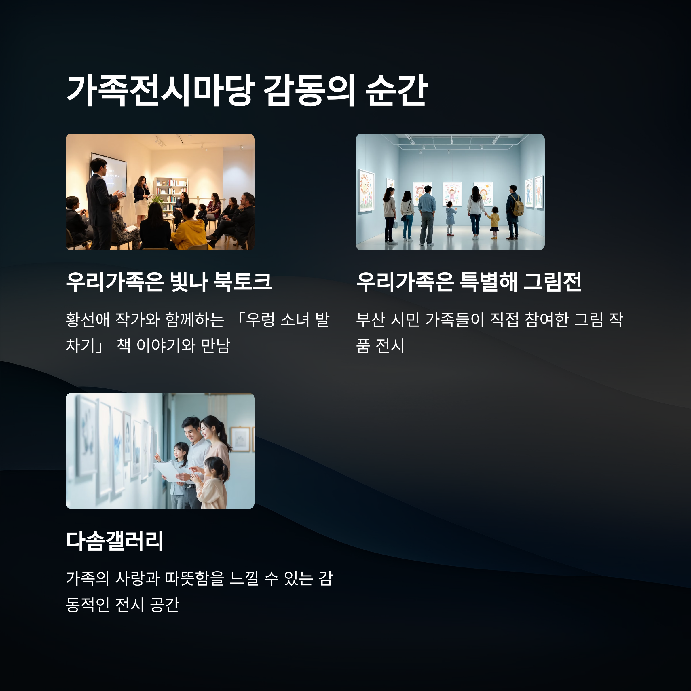 또한 ‘우리가족은 특별해’ 가족 그림전에서는 부산 시민 가족들이 직접 참여한 그림 작품들이 전시돼요. 🎨