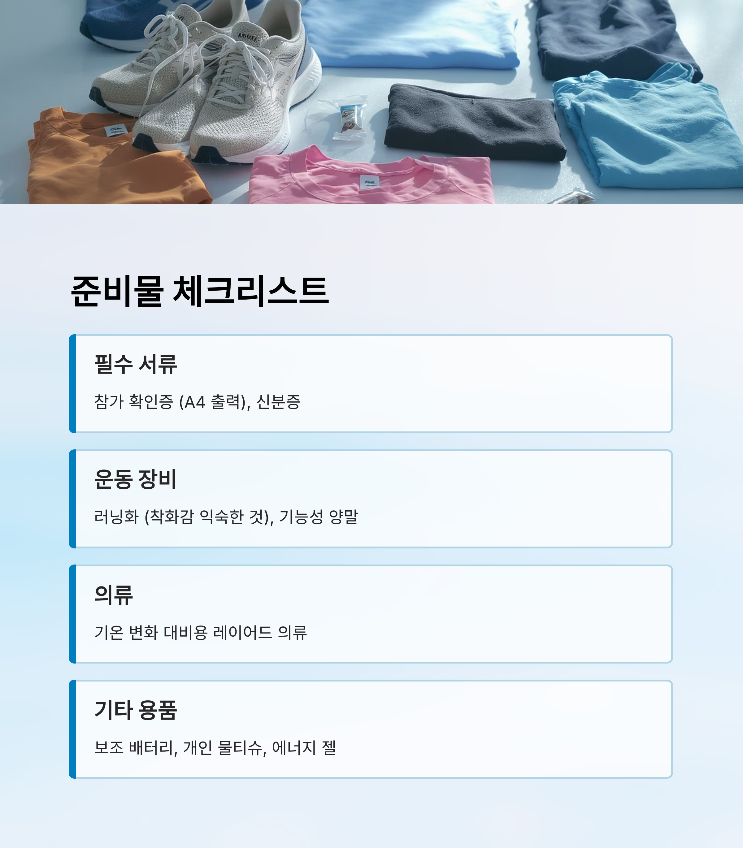 마라톤은 단순히 운동화 하나만 있으면 되는 게 아니에요. 특히 손기정 평화 마라톤처럼 대규모 도시형 대회는 현장 혼잡과 변수도 많기 때문에 준비물이 정말 중요하답니다. 🧳