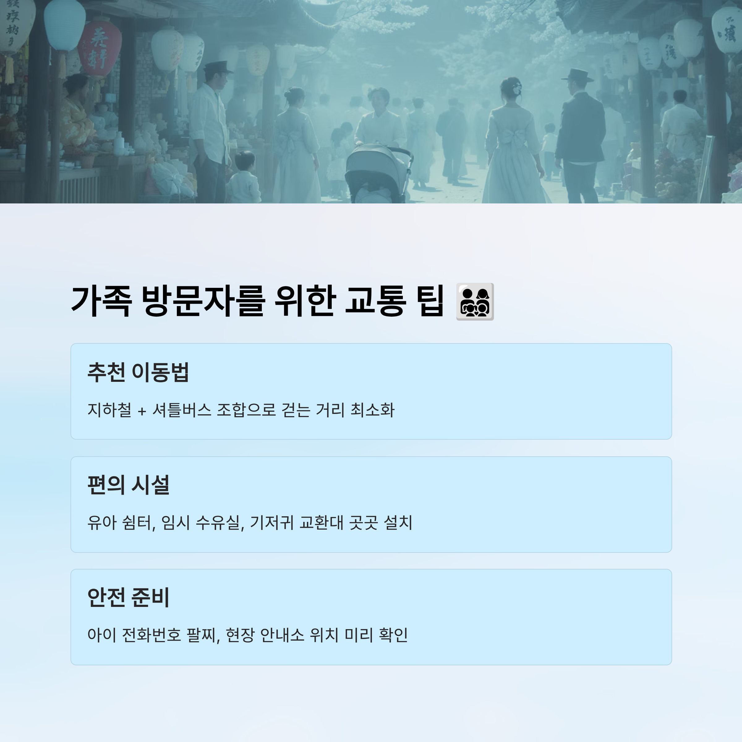 👶 가족 관람객을 위한 교통 & 이동 요령