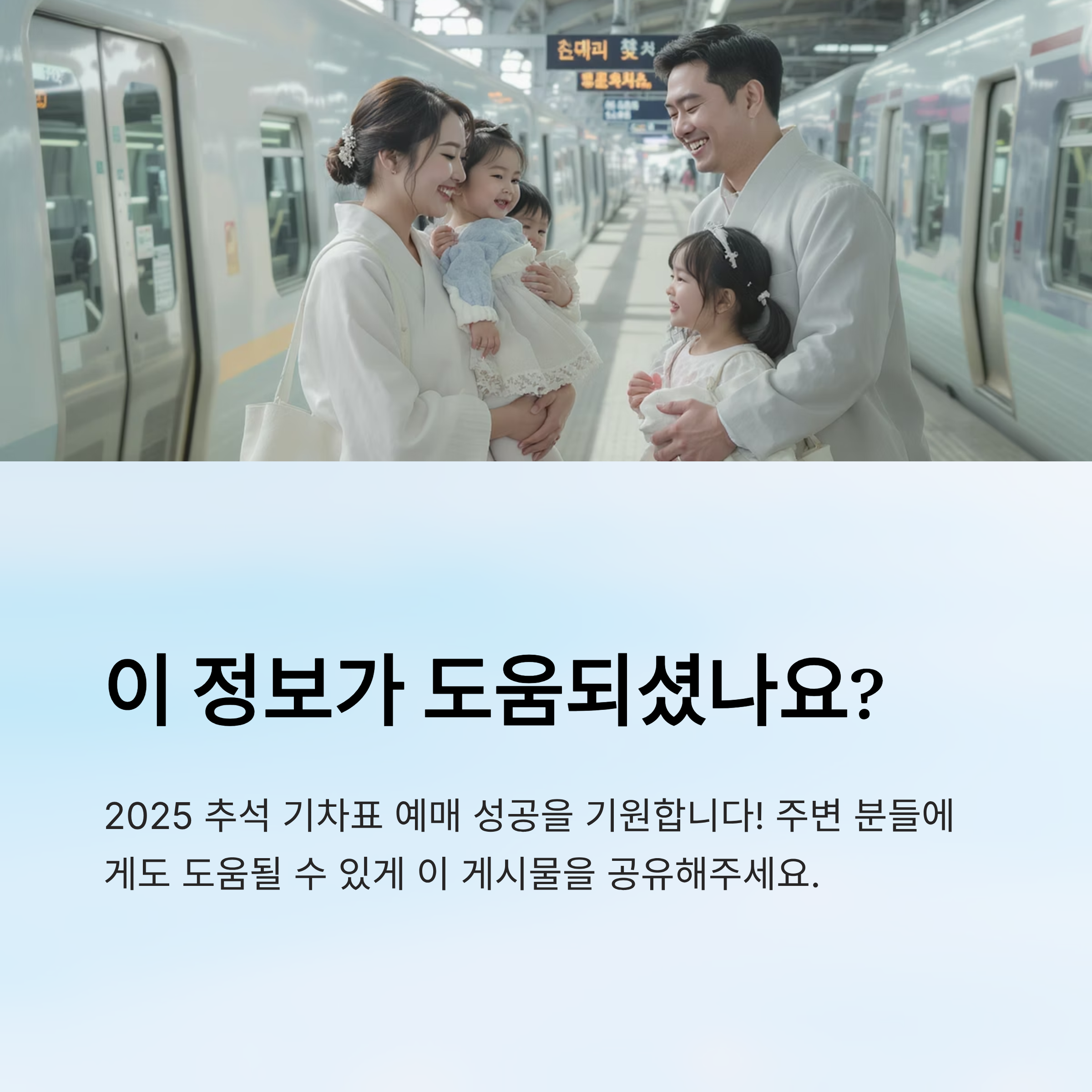 ⚠️ 본 글은 2025년 추석 기차표 예매를 준비하는 분들을 위해 작성된 정보 안내용 콘텐츠예요. 실제 예매 일정과 정책은 코레일, SRT 공식 공지에 따라 달라질 수 있으니 반드시 최신 정보를 확인해야 해요.